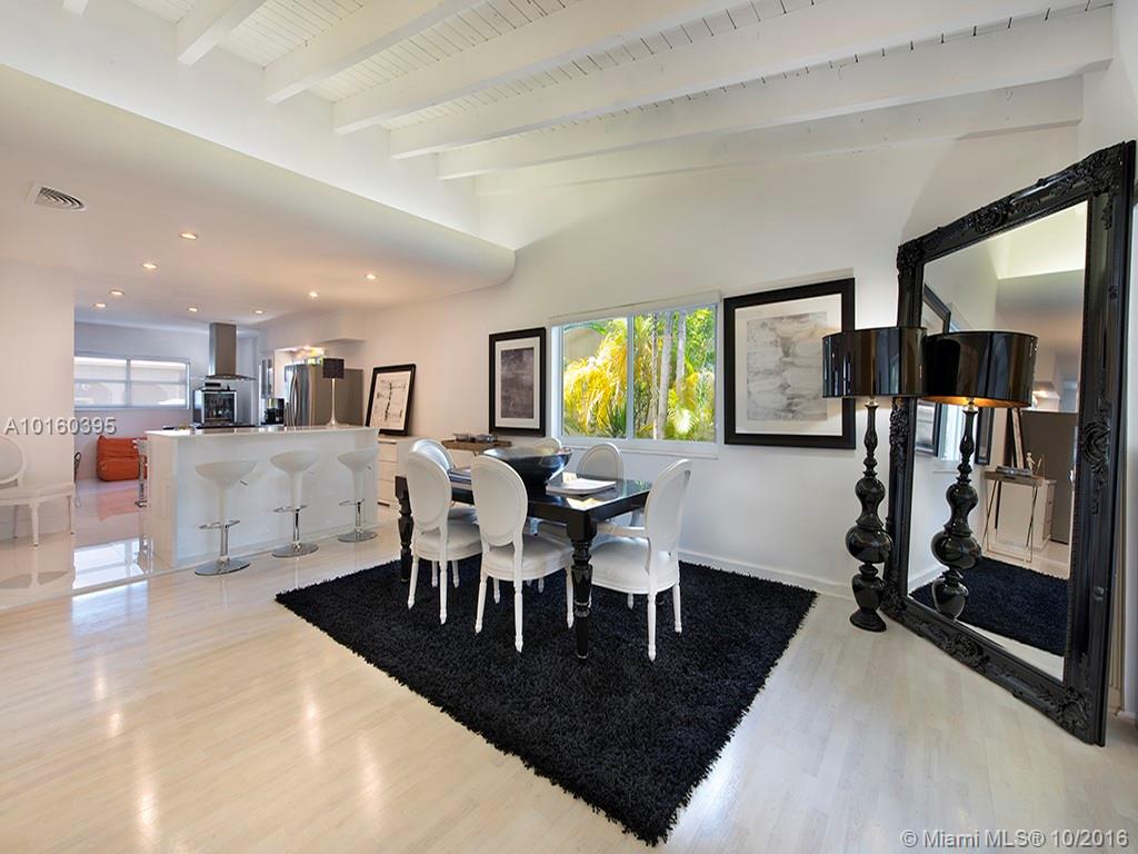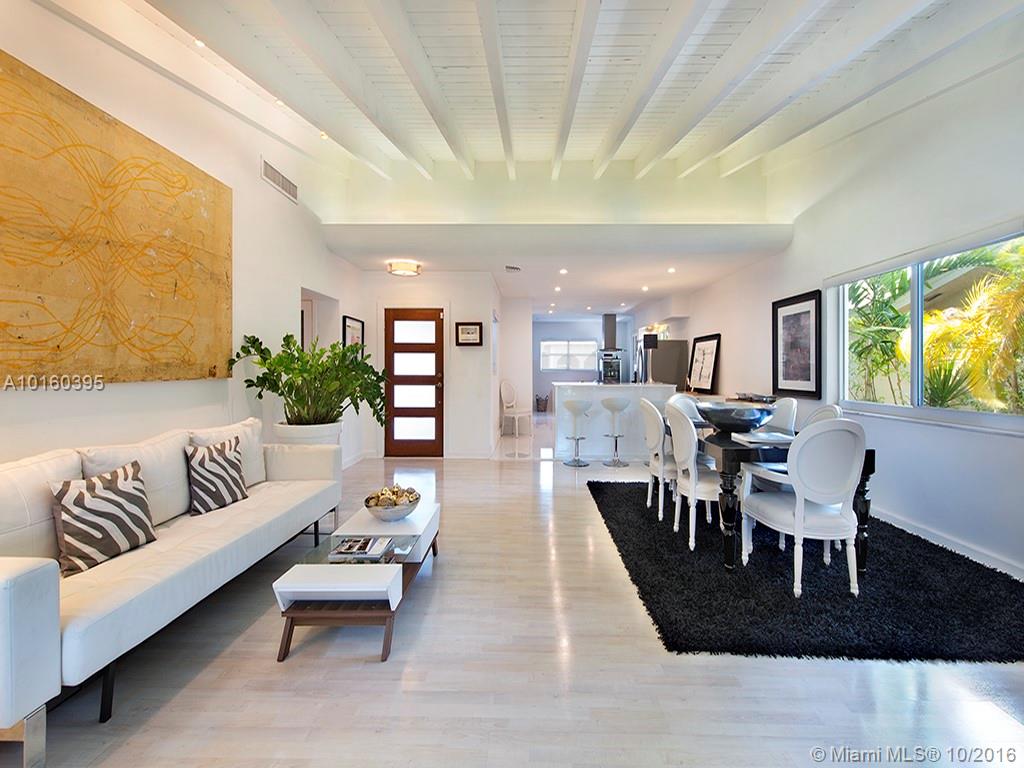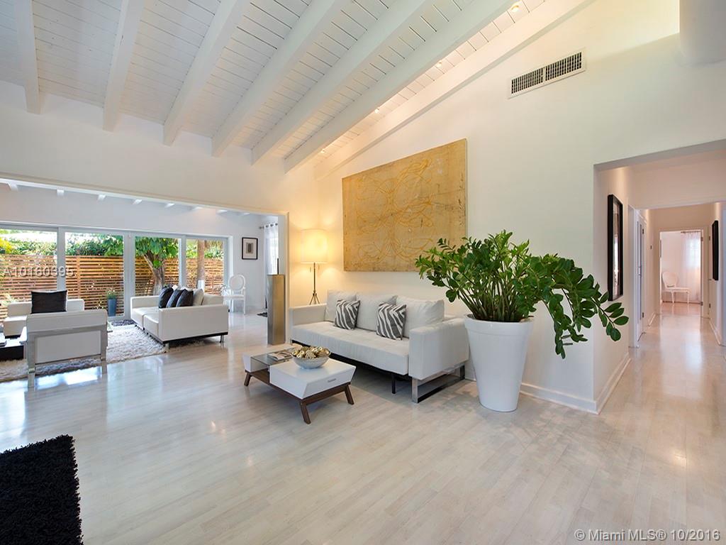 Best buy In Bay Harbor Islands! Sleekly renovated & move-In ready steps from shops, temple, beach. Pristine open LR/DR/FR w/beamed soaring ceilings, whitewashed maple floors & large glass doors leads to pool/hot tub w/shower & expansive deck In private, fenced yard. New kitchen w/glass porcelain tile floor, quartz & black granite counters, gas range, SS appls. 2 new designer baths. 3 large beds, master w /dressing room. Updated electric. A/C 4 years. Some Impact windows. Flexibility to customize/expand.