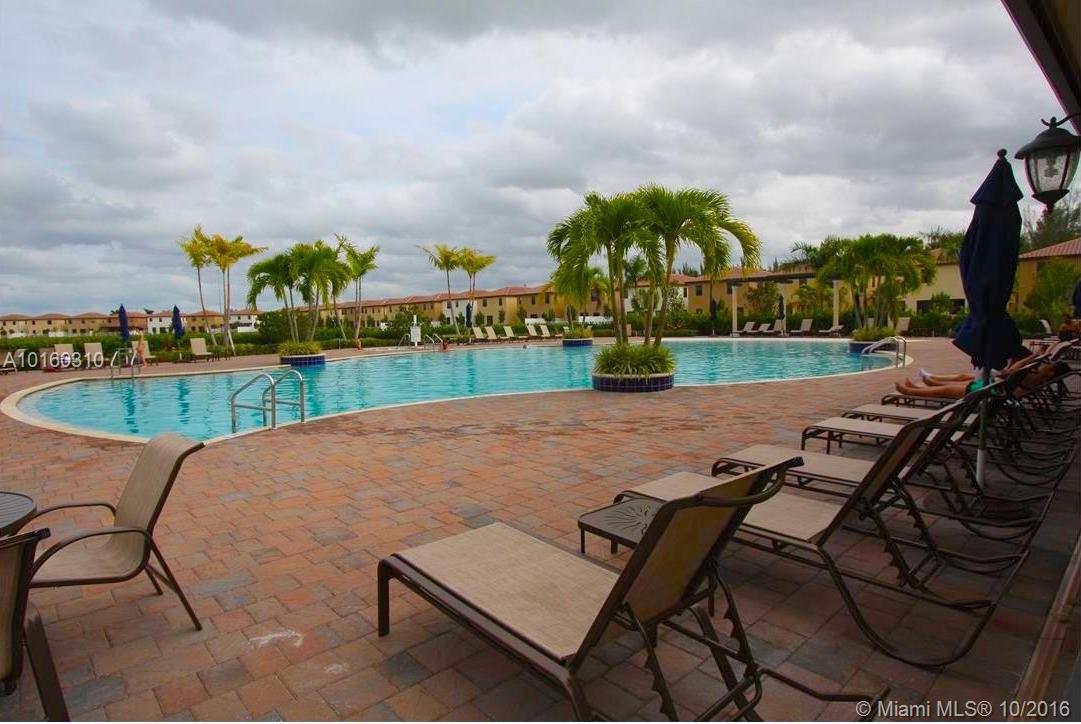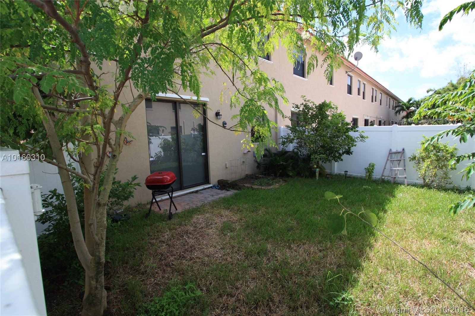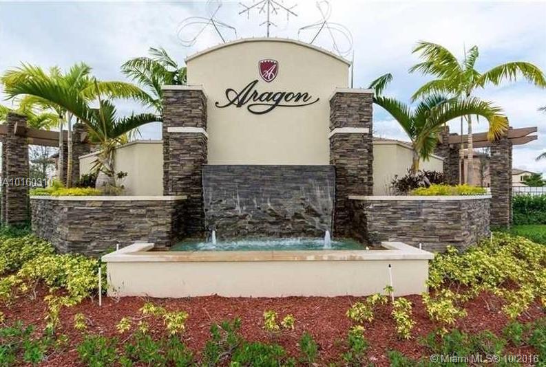 Best townhouse location in Aragon - premium corner lot across from park area and lake! This spacious Florence model (3 bed, 2.5 bath, 1 car garage) feels like a single family home with all the extra windows. Kitchen has granite counters, wood cabinets and stainless steel appliances. Washer/Dryer on 2nd floor. Large, fenced back yard. Gated community by Lennar with resort-style amenities - pool, spa, clubhouse, fitness center, playground. Close to shopping, restaurants, major highways, Doral & Miami Lakes.