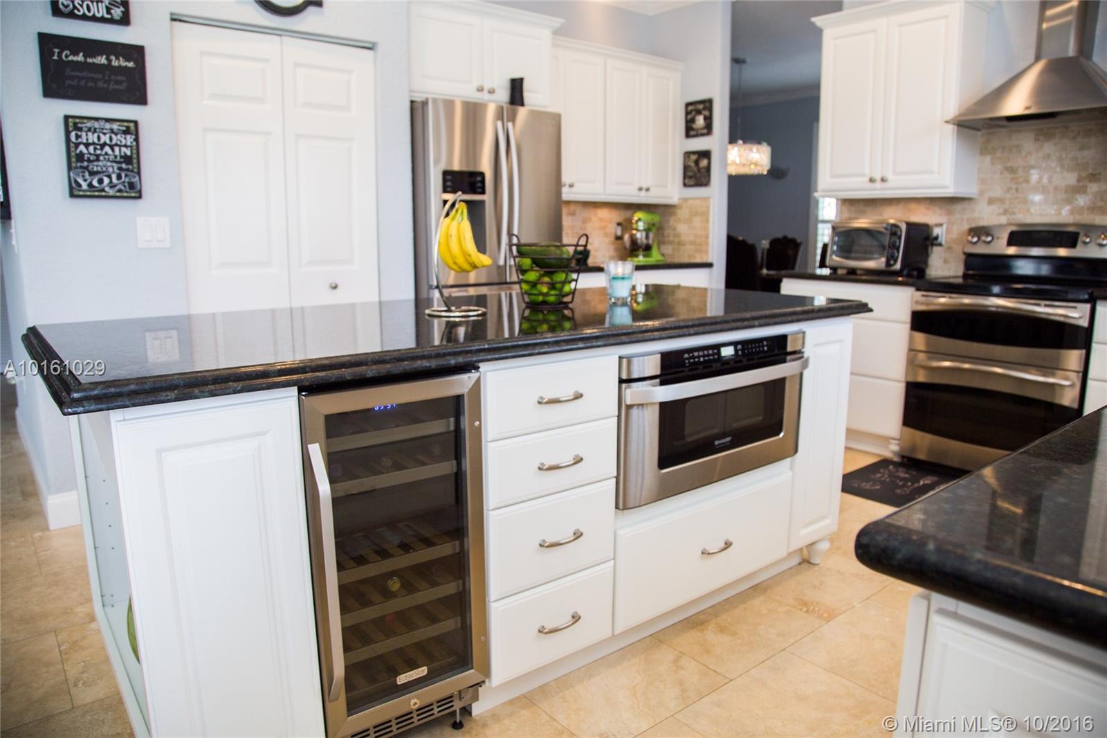 Exquisite 5 bedroom 4 bathroom remodeled 2 story home in Silver Lakes. Main level with travertine floors throughout living, dining, kitchen, family room and bedroom with bathroom. Kitchen with newer cabinets, granite counters, SS appliances, center island with microwave and wine refrigerator. Upper level with bamboo flooring. Master suite with sitting area. Master ensuite with dual vanities, corner shower and marble tub. Large private fenced backyard with spacious patio. Room for pool. Newer A/C.