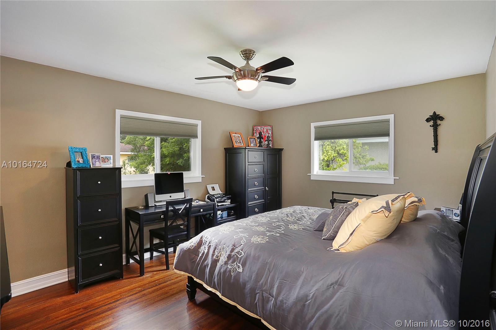 This absolutely gorgeous home has been beautifully and lovingly updated and is situated ideally in the heart of the Gables. The home features open living and dining area, refinished and stained hardwood floors throughout, beautifully renovated marble kitchen with stainless appliances, lots of storage & open feel, gracious bedrooms & 2 renovated baths. Also notable are the impact windows, spacious lot w/ room for a pool, screened patio and 1 car garage. This home is immaculate and truly special!