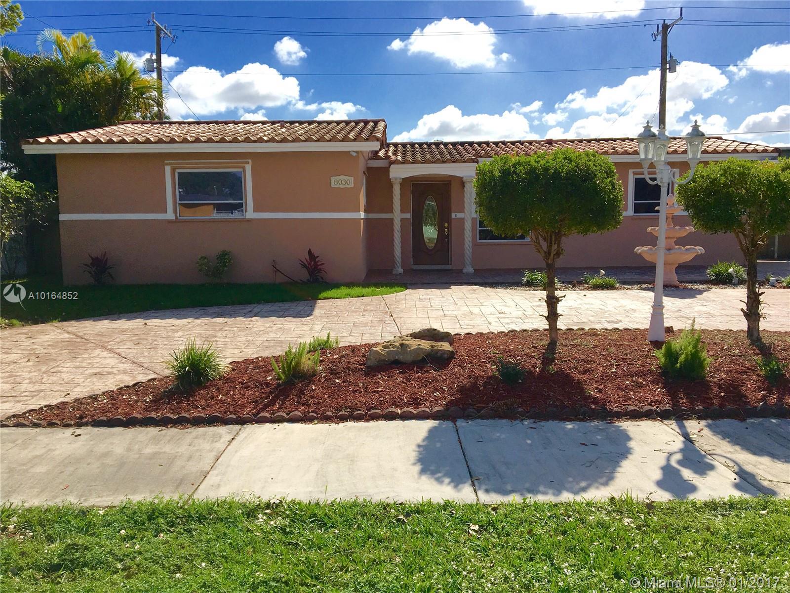 Beautifully updated home in Palm Springs North (two blocks from Miami Lakes), equipped with top of the line stainless steal appliances and granite counter tops. Master bedroom features large walk in closet with built in storage. Spacious living area featuring a granite and stone fireplace with two French doors leading out to paved backyard, salt water pool and spa, great for entertaining and with enough room for a boat. Dream home!