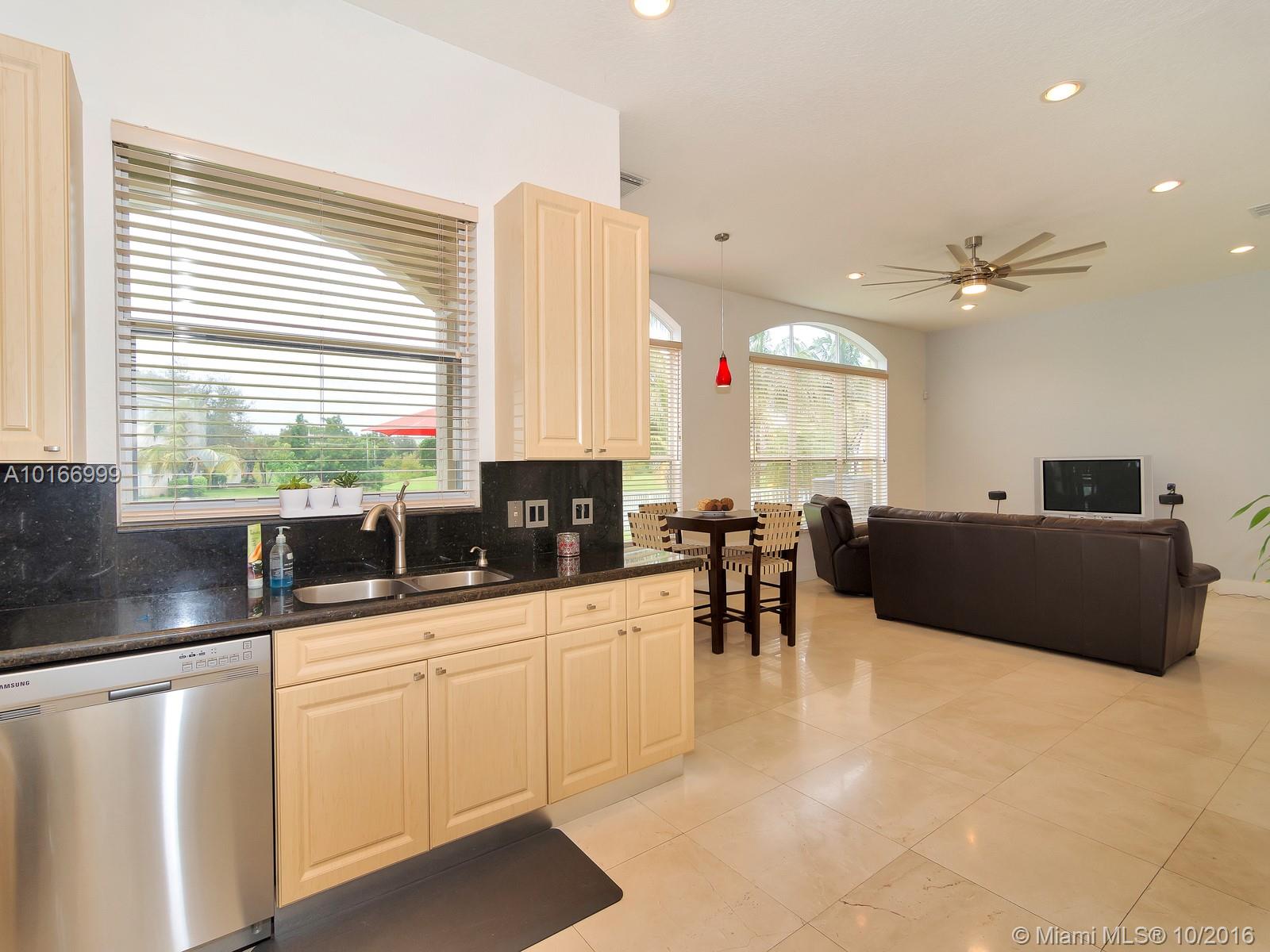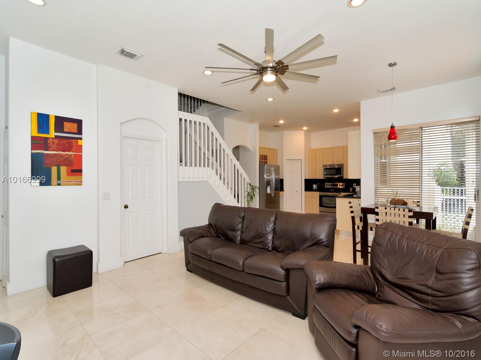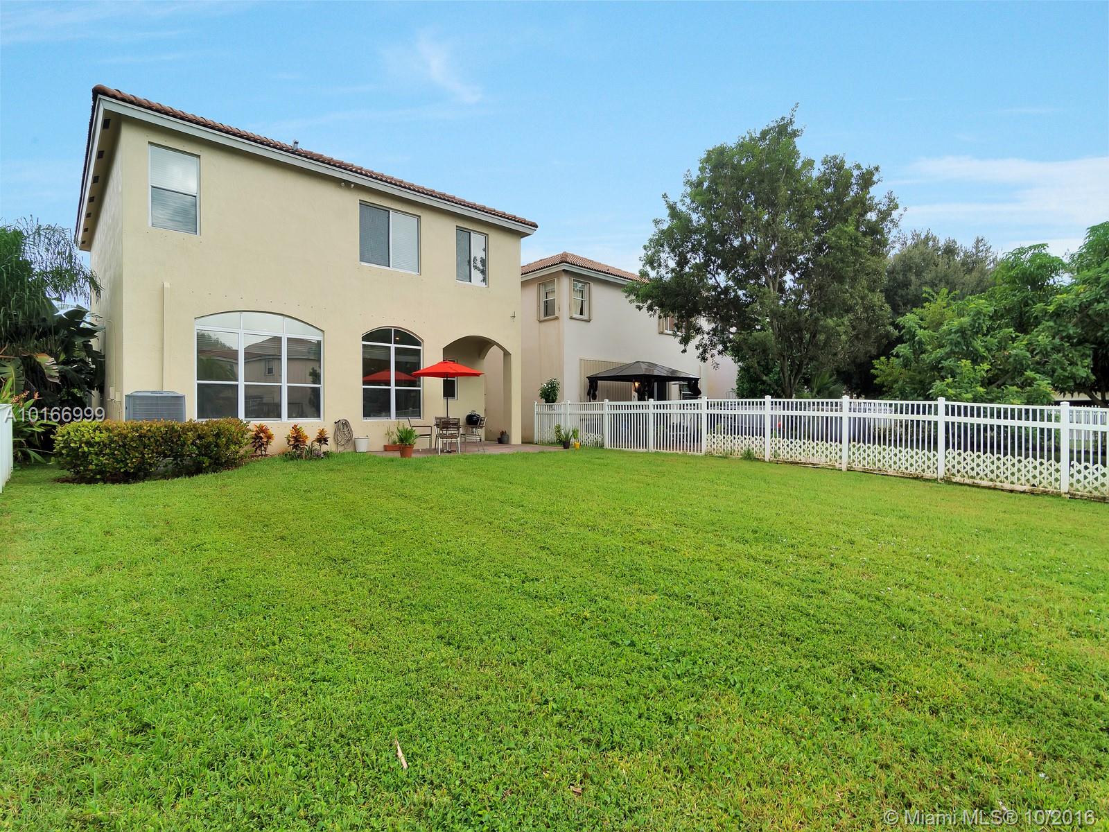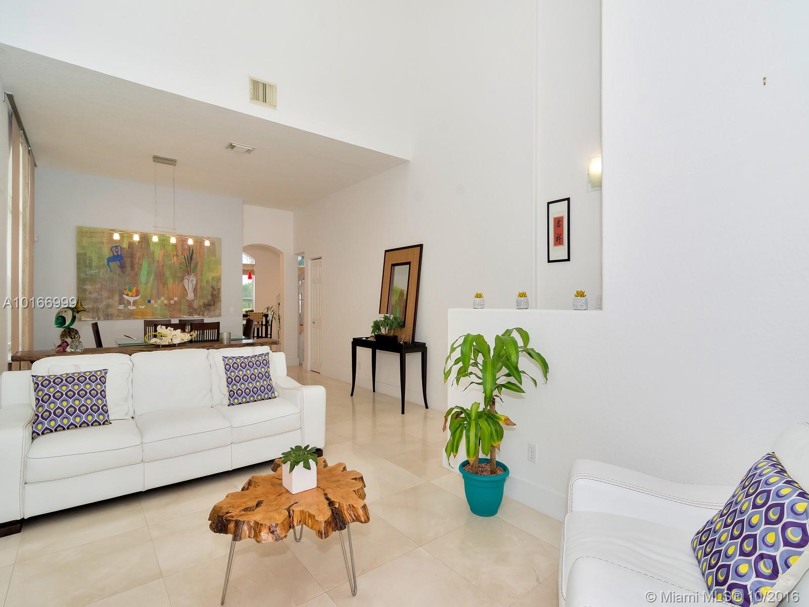 Wow! Absolutely Stunning.4/2.5 baths. High ceilings,Marble floor on living areas and wood on Bedrooms.2 master bedrooms,huge walking closets,gourmet kitchen,new AC alarm & Camera system,Huge backyard overlooking lake view,Ideal patio for pool entertainment. New fence on patio (to be installed before closing) Attached two car garage.Located in a family oriented gated community full of amenities, children playhouse, pools, tennis courts, gim, clubhouse close to Broward College. Don't miss this opportunity