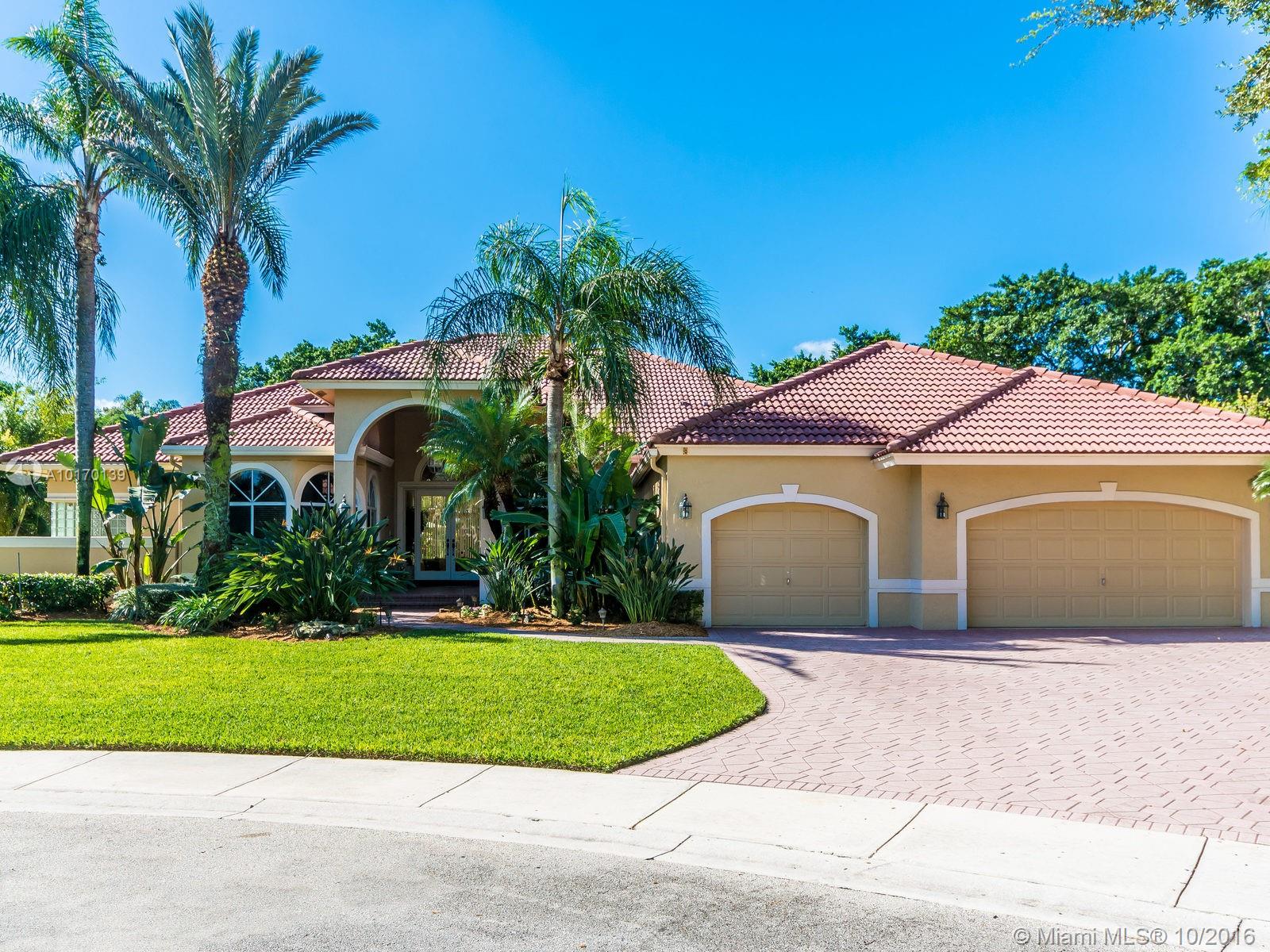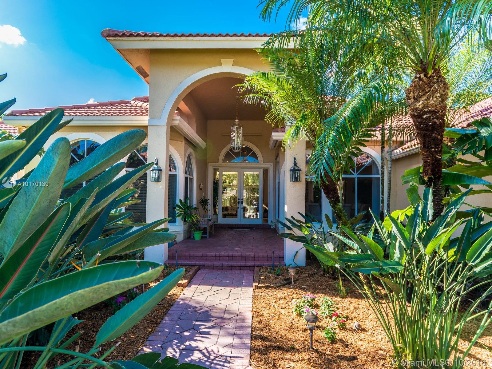 SPECTACULAR 5/3.2 SPACIOUS BUILDER'S MODEL ESTATE/ CUL-DE-SAC/ TWO GOLF COURSES/ HUGE PRIVATE LANDSCAPED PIE-SHAPED FENCED LOT/ NO NEIGHBORS BEHIND/ EXTENDED OPEN AIR PATIO/ RESORT STYLE POOL & SPA/ SOARING CEILINGS/ MARBLE, WOOD & CARPETED ROOMS/ ISLAND KITCHEN/ WOOD CABINETS/ BREAKFAST AREA, SNACK COUNTER & BUTLER'S PANTRY/ SPLIT PLAN/ FORMAL DINING/ NEWER A/C UNITS & WATER HEATER/ WET BAR, OFFICE, CROWN MOLDINGS/ NEW POOL MOTOR/ STORM SHUTTERS/ GUARDHOUSE/ A+ SCHOOLS/ TENNIS & RECREATION/ RUN TO SEE!!