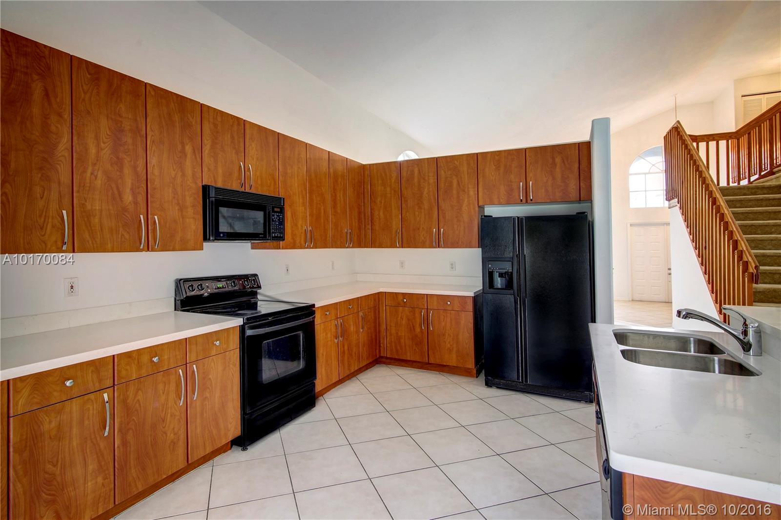 The home you have been waiting for just hit the market. This large 4 Bedrooms and 3 full Bathrooms features open kitchen with brand new countertops and wood cabinets Tile flooring throughout first level and brand new carpet in all of the bedrooms. Separate Utility/laundry room, one bedroom in main level, back patio accordion shutters. Family community with guard gated entrance, club house and community pool. Centrally located. Great price. Easy to show.