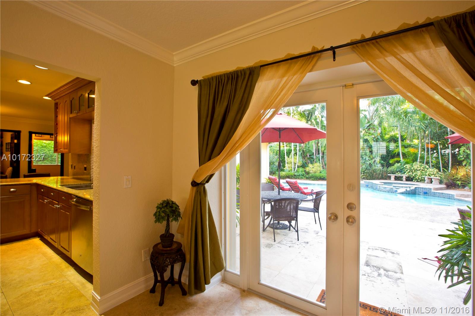 4bd/3bth gem is located East of US-1 in the Riviera section of The Gables. Home is immaculately maintained & full of great details. The floors are Travertine in the living areas & wood in the bedrooms. It has a combination of Impact Windows and accordion shutters with a massive double French door with writ iron in the entry way. It has wood cabinets, granite and stainless steel appliances in the kitchen. An immaculate two car garage & a beautifully landscaped yard surrounding the salt water pool & Jacuzzi