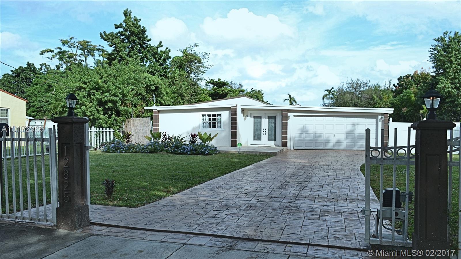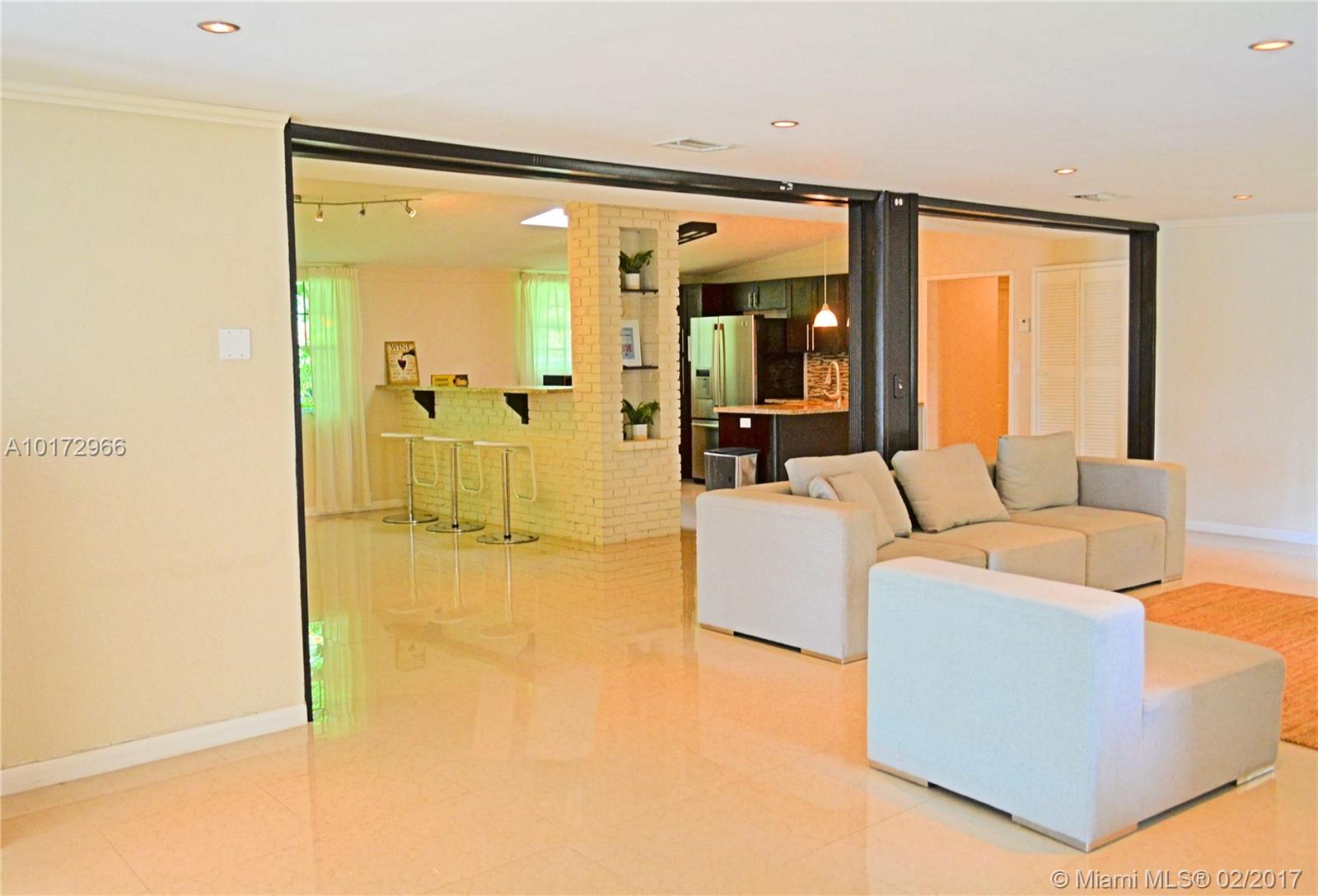 Exceptional Architectural designed home located in Griffing Biscayne Park Estates. Home features vaulted ceilings, over sized pool w/separate pool house, huge yard, excellent for entertaining friends and family! The property has SS appliances, new kitchen w/skylight, granite counter tops, new central A/C, new water heater, travertine and porcelain floors, renovated baths, storage shed, gated private entrance driveway and much more! Split floor plan. Large MB walk-in closet! 15,000 Sq ft of fenced yard!