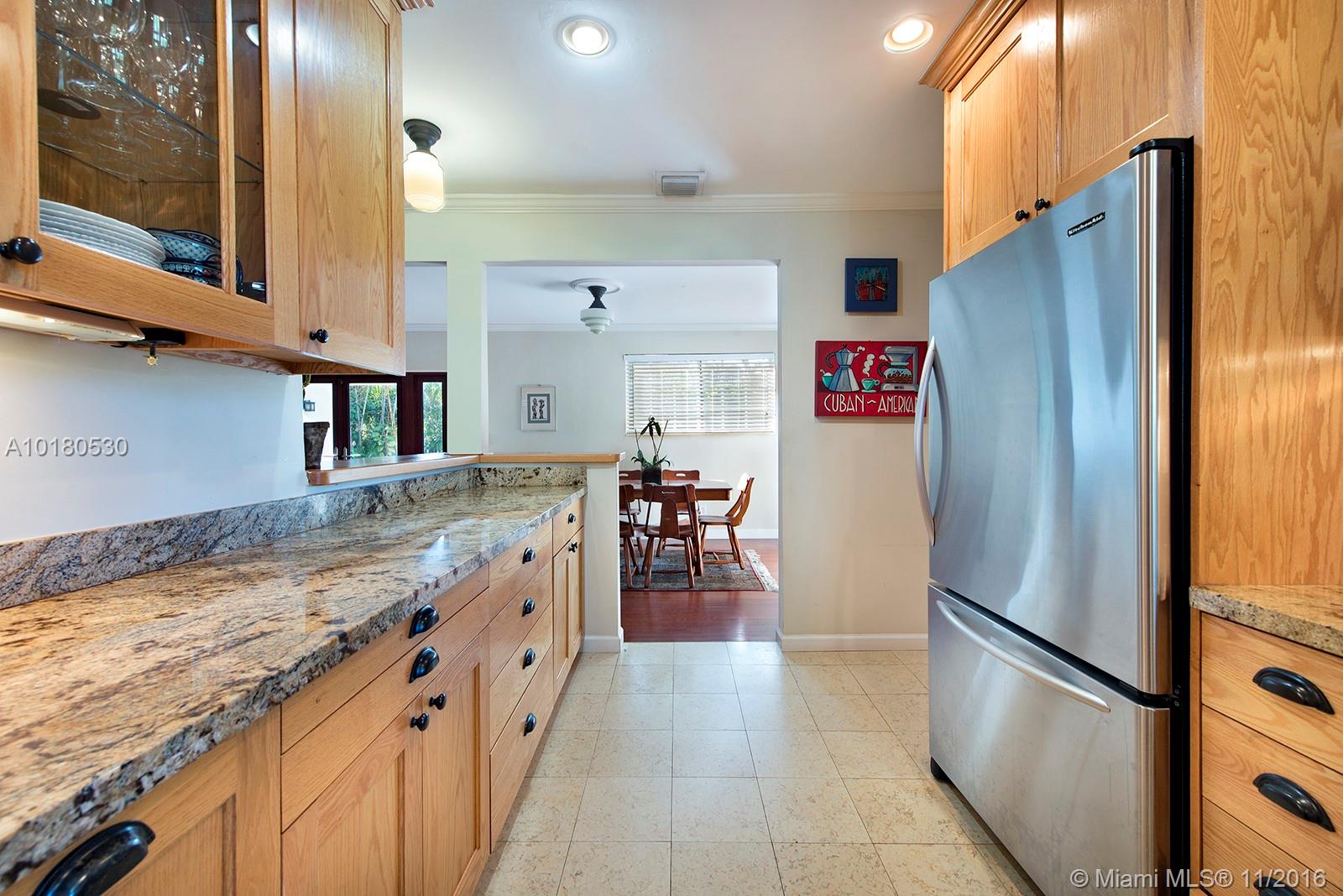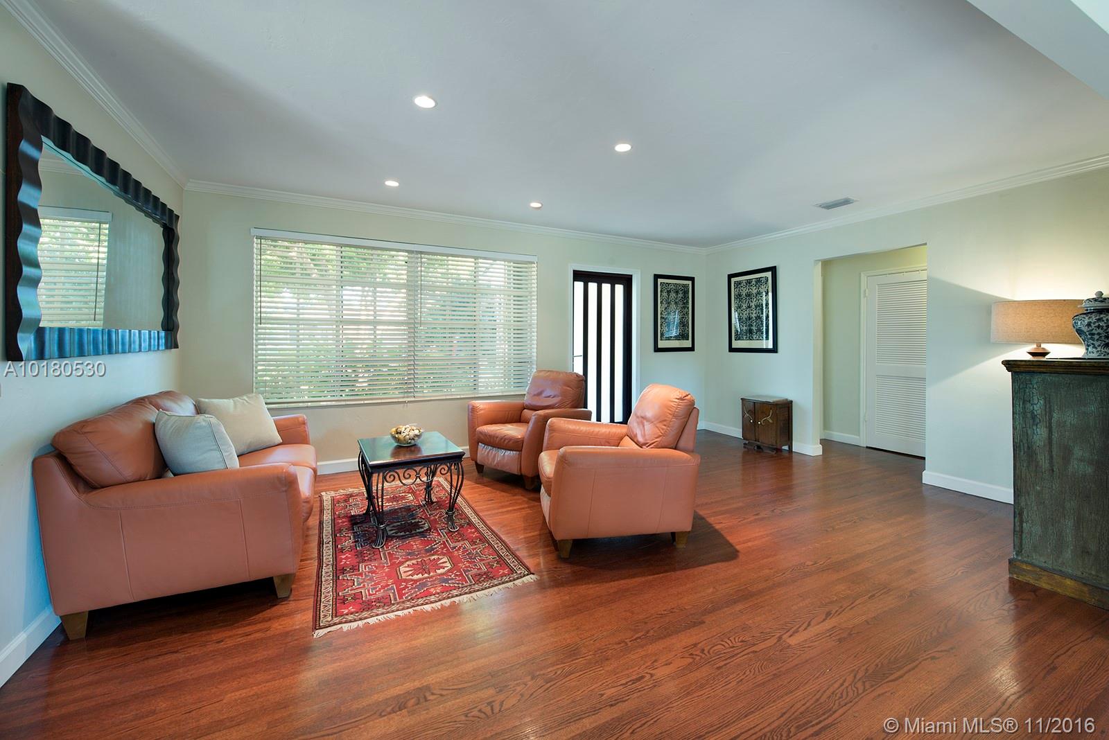 You'll feel right at home when you step inside this gem in Miami Shores. Gorgeous wood floors, large open spaces, gourmet kitchen, huge Master Bedroom, all overlooking expansive back yard. Quiet cul-de-sac street makes this your private oasis near the city. Gas kitchen with commercial grade viking stove/oven, upgraded appliances and granite countertops. Also features 1 car garage. Some impact doors, all others have accordion hurricane shutters. Plus a sprinkler system and a generator included.