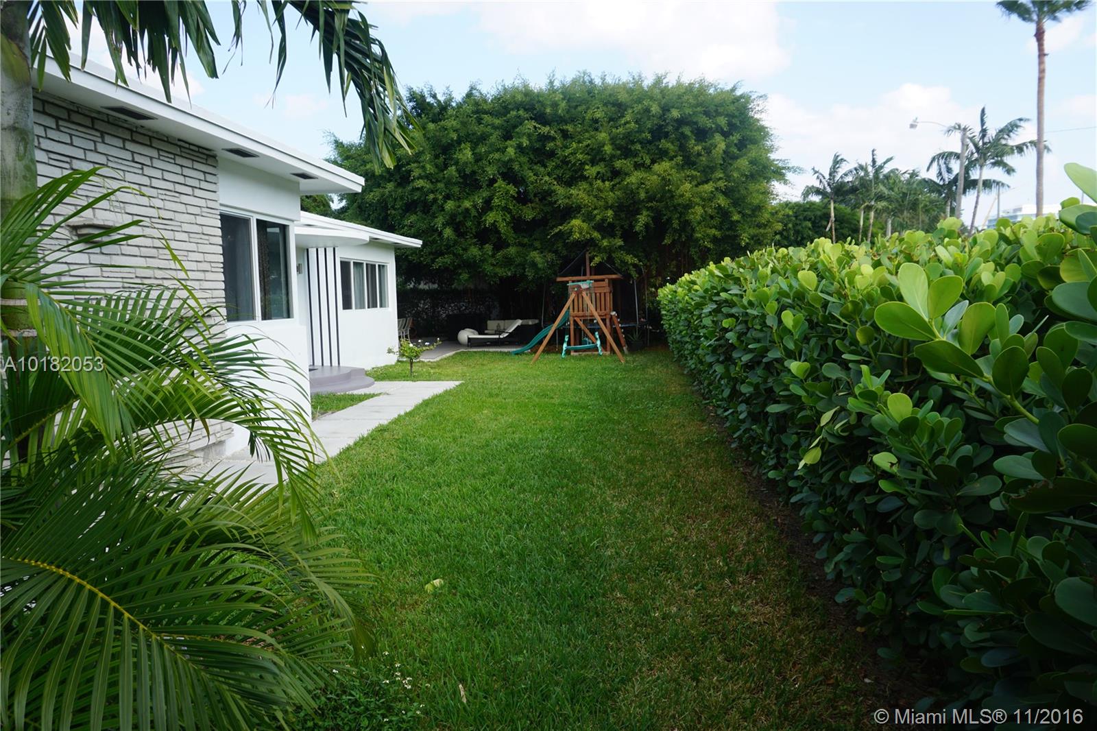 Beach Villa, Renovated 5BR + Den, Garage. Situated on a private corner lot in the best location. Walk to everything; Beach, Community Pool, School, Park and Restaurants or launch your paddle board in the waterway across the street. 1 block from Bal Harbor Shops. This Rare corner home has the driveway and garage on the short side and a large lawn in the front with room for large pool. Shed for bikes and other toys. Living room / kitchen faces patio and kids playground. Impact Windows, SubZero, Bosch