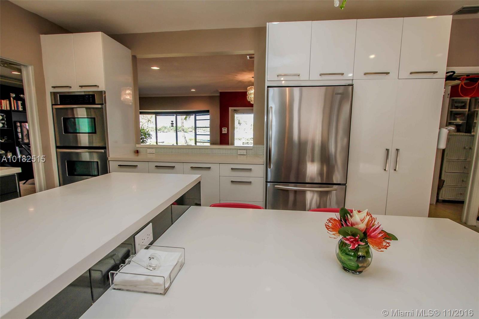 Magnificent waterfront property with ocean access & Private Dock. This large home features 4 BR, 3 BA, 2 Car garage with Salt Water Heated pool.Newer modern European style kitchen, 2 dishwashers, Dbl oven. Formal dining, Master BA has a double sink. Jacuzzi. Located at the end of S Southlake Drive, steps from the Intercoastal waterways. Minutes from the beach.