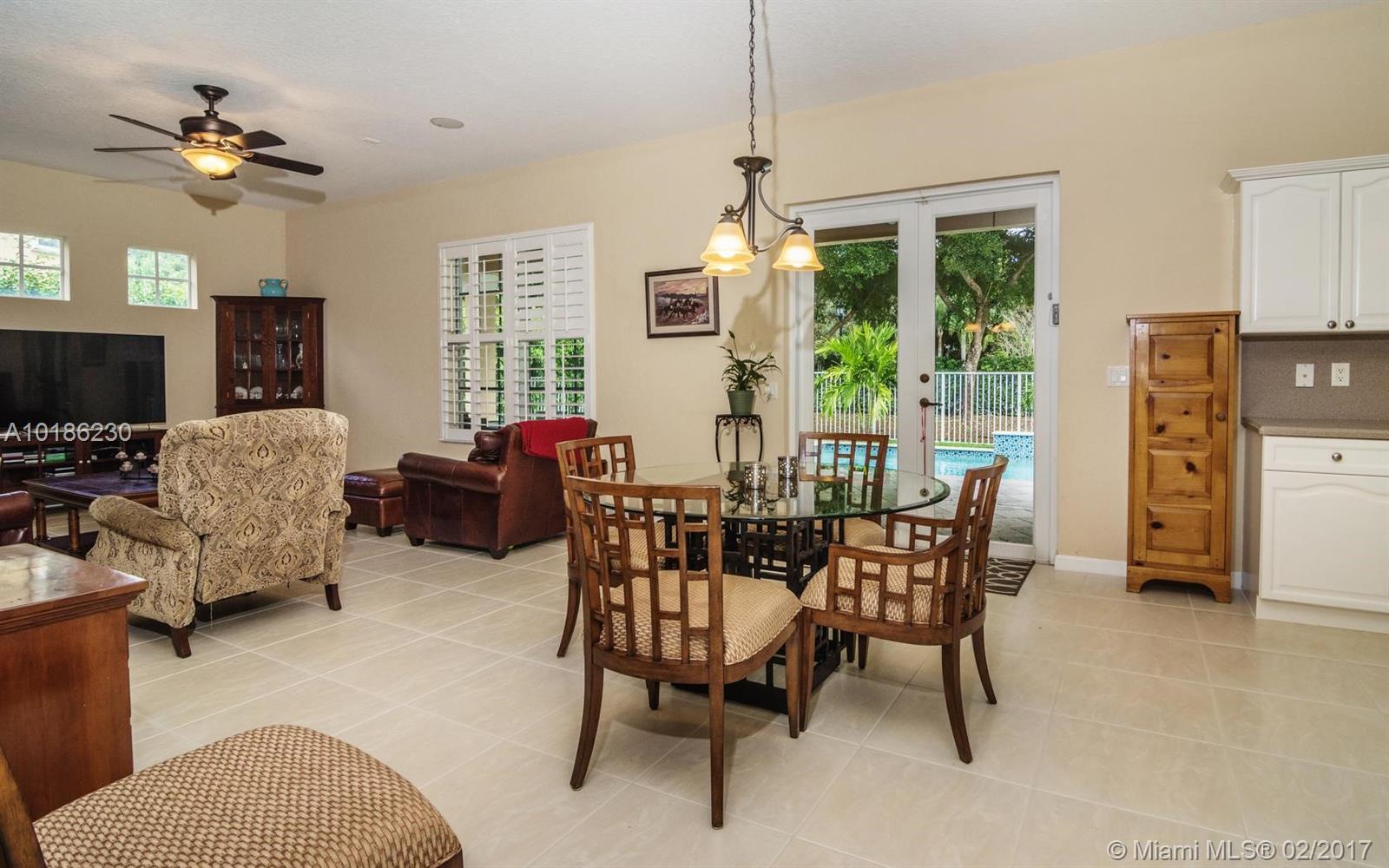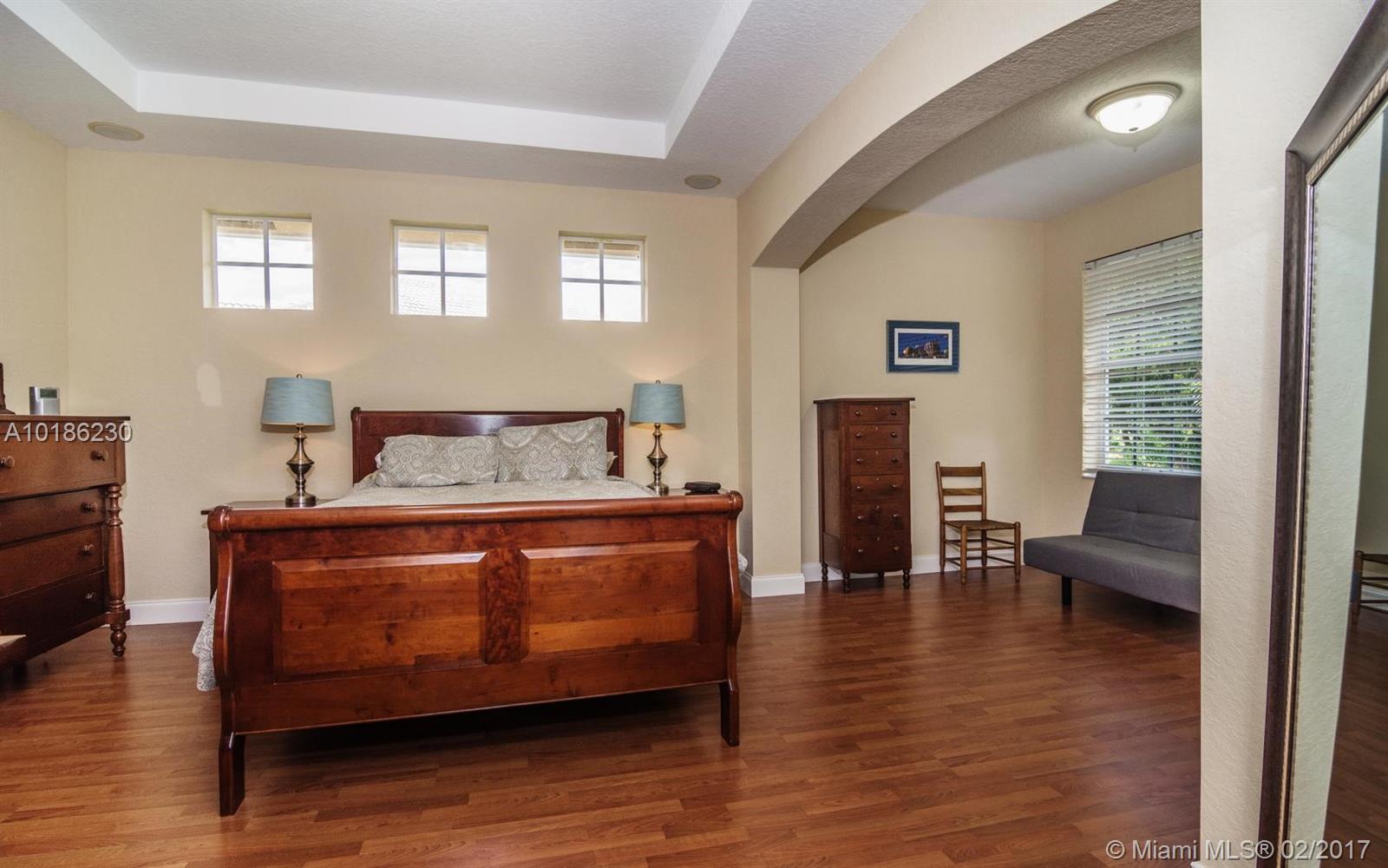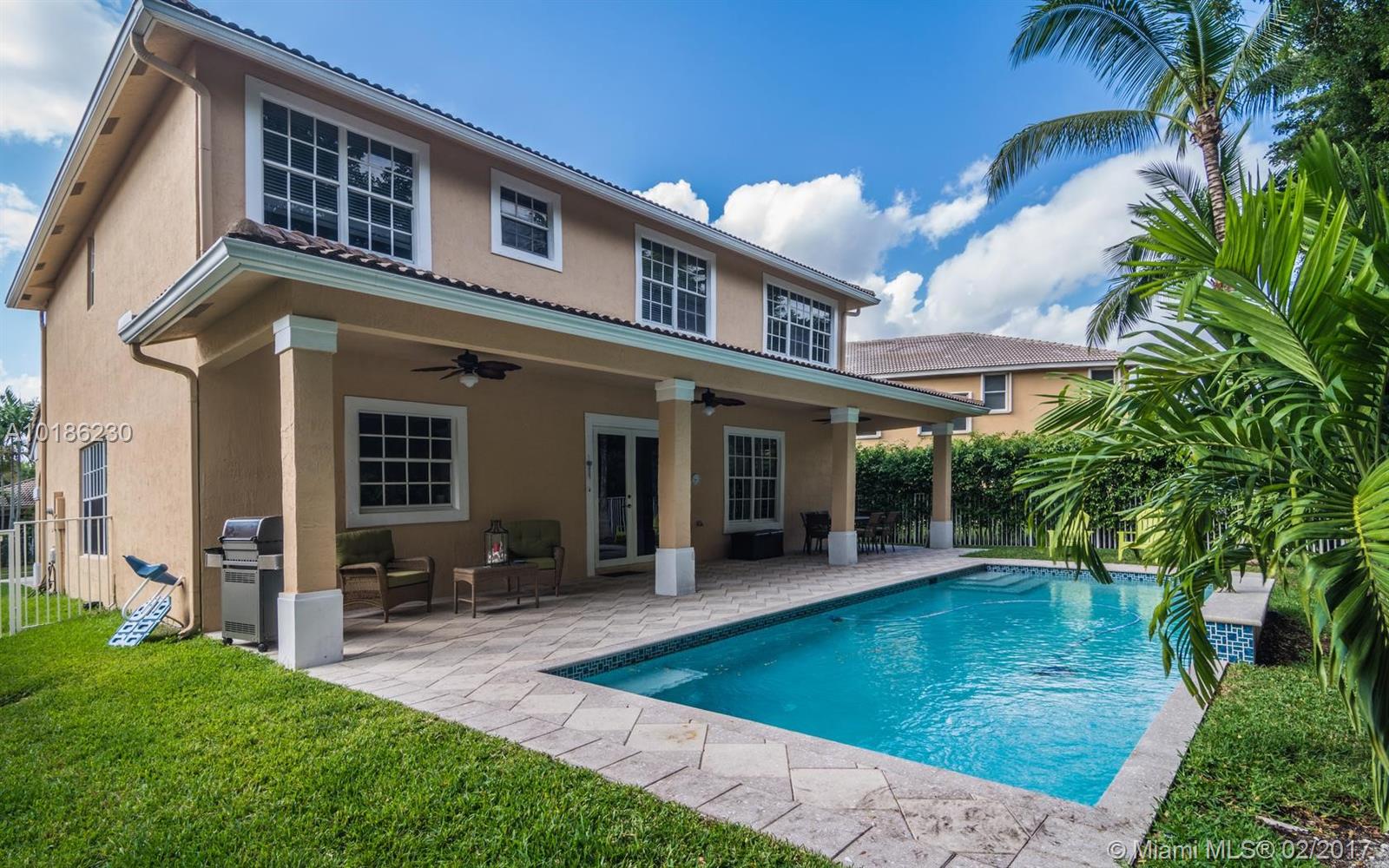 Like New Construction in Weston Hills. Popular Santa Cruz model with BRAND NEW custom Saltwater system, heated pool w/expansive covered patio. No neighbors for pure privacy. Enter this beauty via Palm tree lined street. A Grand 2 story entry foyer welcomes you. White contemporary cab.in kitchen w/center island. Decorated in neutral tones, tile floors on 1st level & wood up. Full bed & bath down. MB is up w/sitting room. Freshly painted interior, 2 New A/C, plantation shutters, walk to community park.