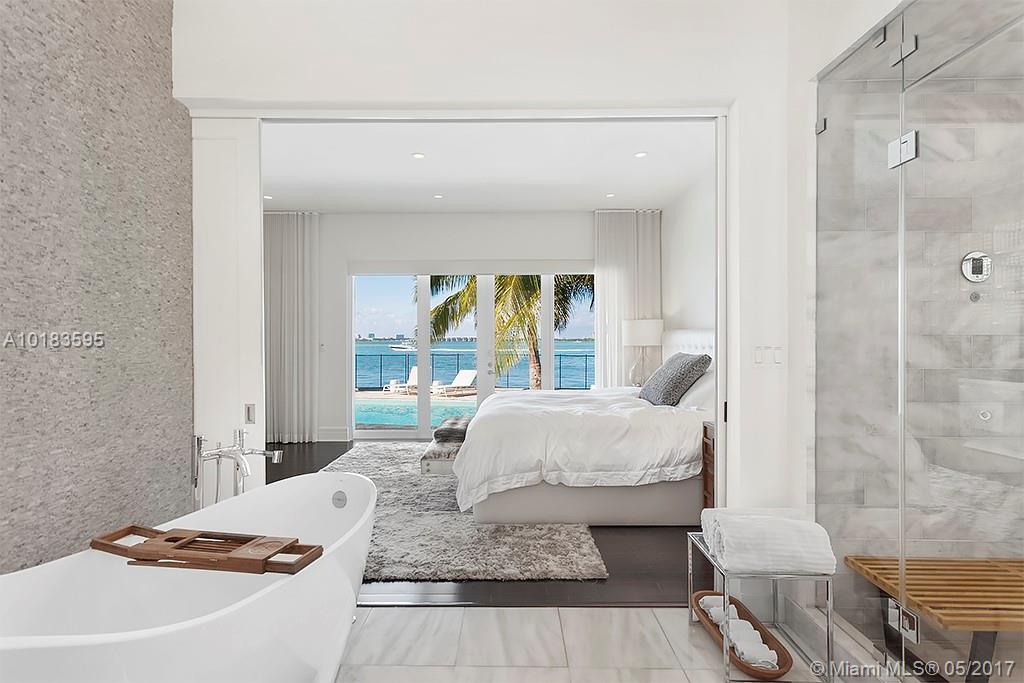 Enjoy stunning views of the bay, Miami skyline & breathtaking sunrises & sunsets in this contemporary waterfront property feat. 100ft on the water. This beautiful home boasts high-end finishes throughout, a large heated pool, private dock & coral stone deck, perfect for entertaining! Features include luxurious baths, European kitchen, impact windows, French doors, wiring for state-of-the-art smart system, high ceilings & white crystal floors. Also includes a separate guest house w/ a separate 1 car garage