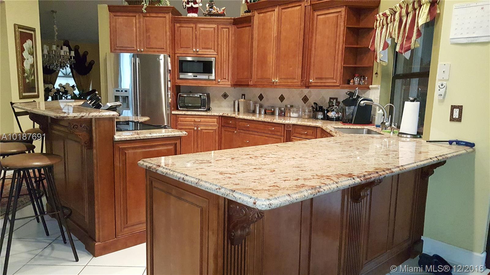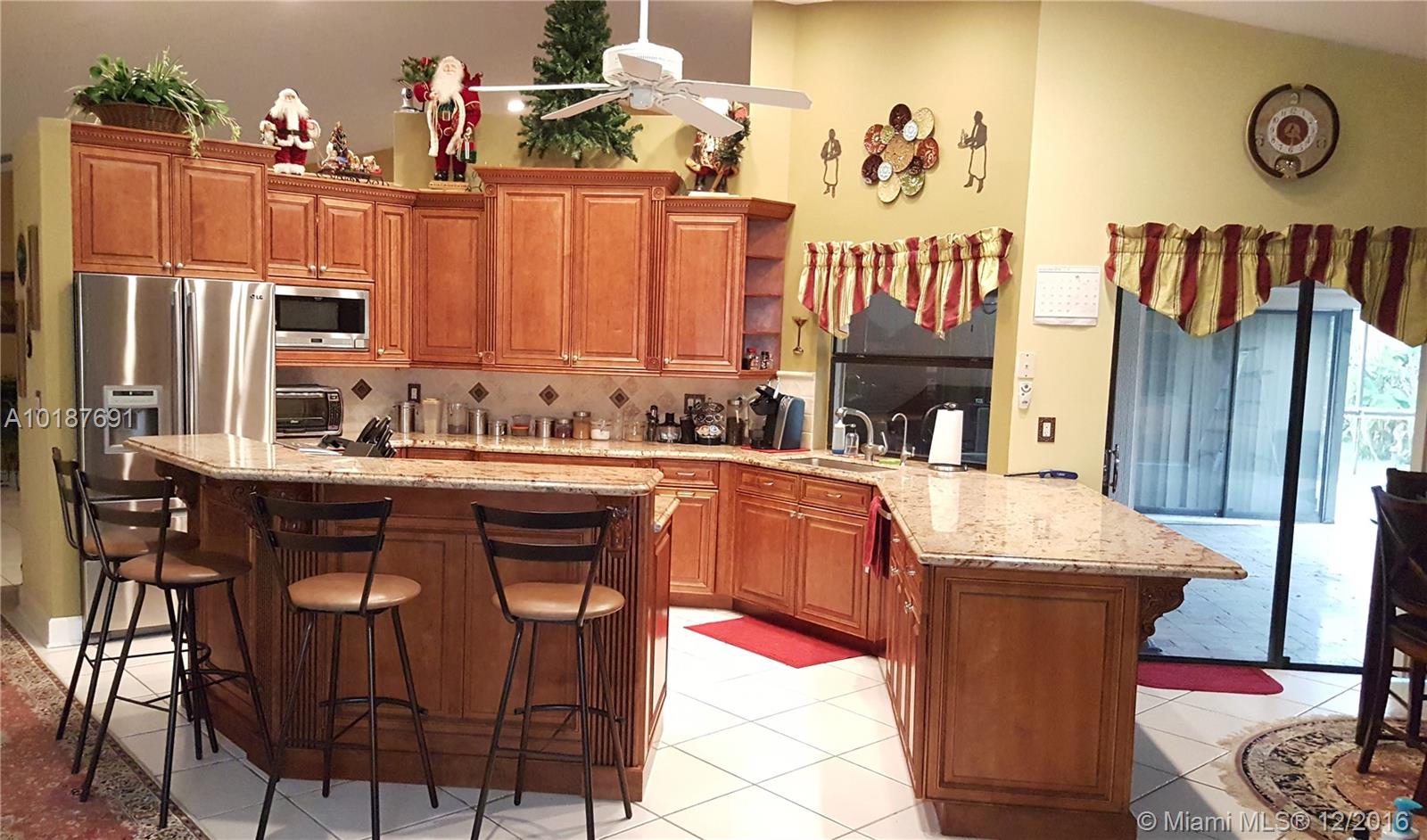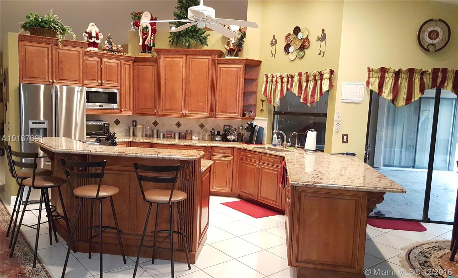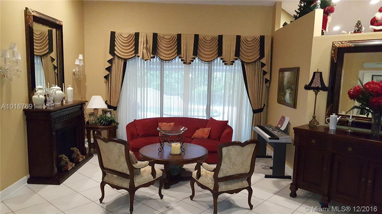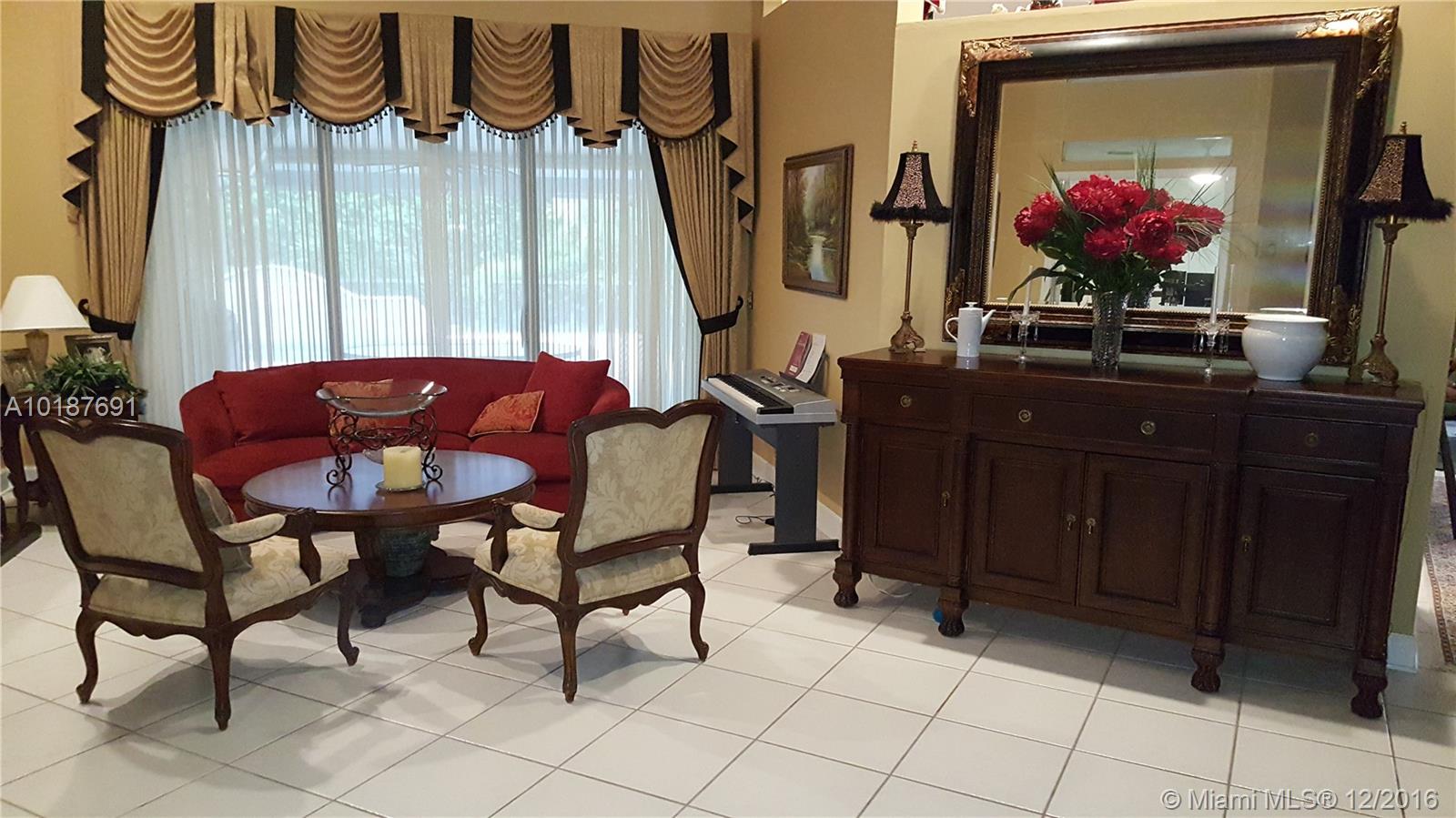 This gorgeous and impressive open floor plan house offers split 4 bed rooms and a den/office, gorgeous kitchen, family room, breakfast nook, formal living room and dining room, 2 and ½ half baths and 2 car garage in a private lush gated community located in the most highly sought location in Coral Springs. It has a pool with water fall, salt generated chlorine and solar water heating system. Tile throughout the house and carpet in the bedrooms. The backyard is fenced with tall hedges for privacy.