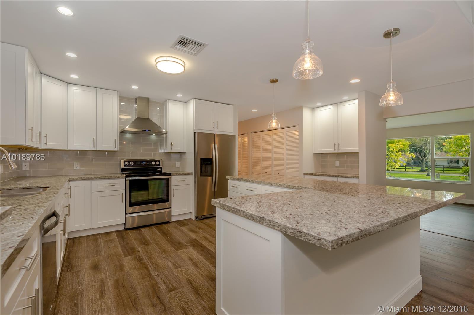Remarkable family home on over 1 acre in Davie! This beautifully landscaped 4 Bedroom / 3 Bathroom abode features wide open floor plan & Florida room w/ sink, mini bar & wine cooler. Beautiful white kitchen with stainless steel appliances and L-Shaped island. Two over-sized garages with work area and finished clubhouse perfect for entertaining. Amazing location with great schools! Close to highways, shops, restaurants, Vista View Park, and much more!