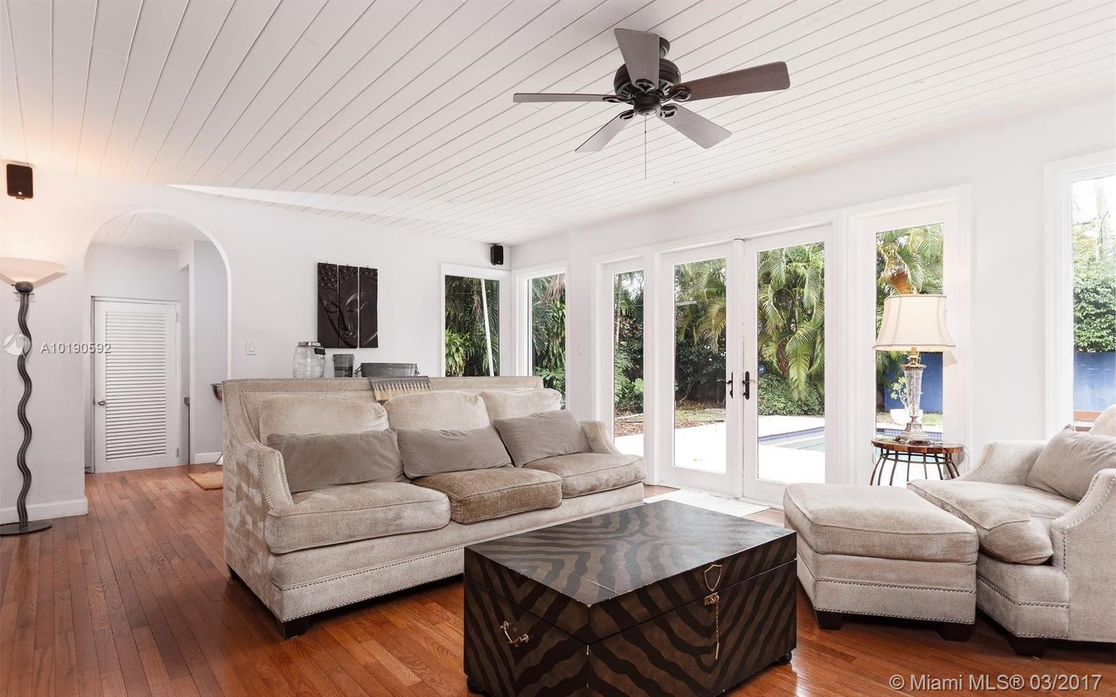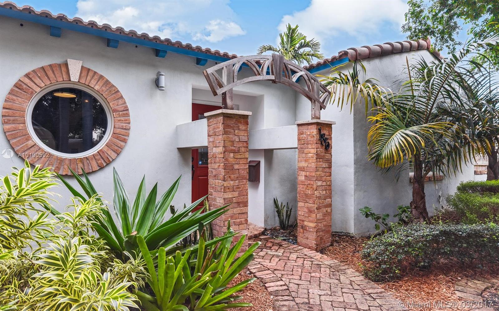 A perfect marriage of earthy elegance & sophisticated mid-modern details!! Abundant original architectural details include wood floors, fireplace, tray ceiling. Open & spacious kitchen that leads into fabulous florida room & bar area overlooking lush landscaping and pool. Your own tropical paradise, great for entertaining. Lovely rear bedroom overlooks garden paradise. Impact windows & french doors. Dining room could be easily converted to a 3rd bedroom. A must see!