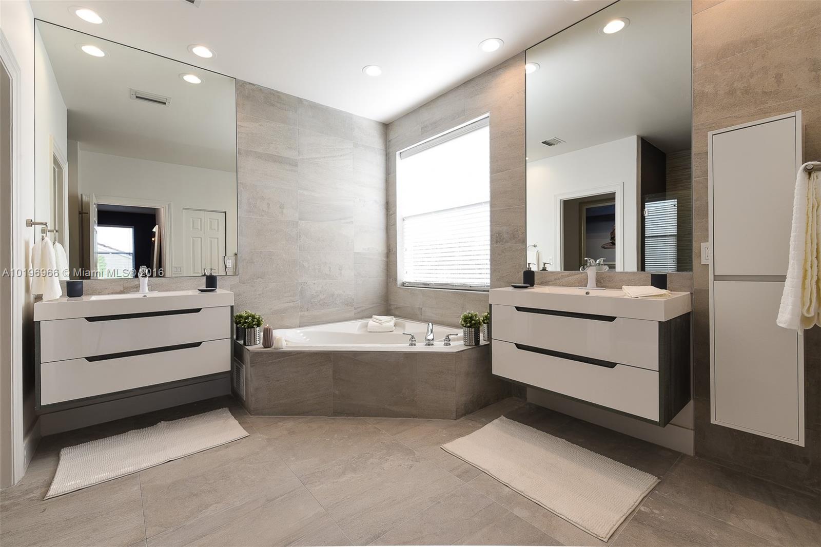 Seller Motivated!! Community at Sunset Lakes Miramar with private gate and surrounded by great schools. House designed by HA Style for Living with SEVERAL Upgrades such as tile & engineering hardwood floor, brand new quartz countertop kitchen, new european title and vanities bathroom. 1/1 Bed/Bath in the first floor with 2 master bedrooms in the 2nd floor. SPACIOUS NEW WALKING CLOSETS. Monthly HOA $155. Enjoy resort amenities such club house, GYM, Tennis, picnic & Kids play area. Area Lot is 10,145 SF.