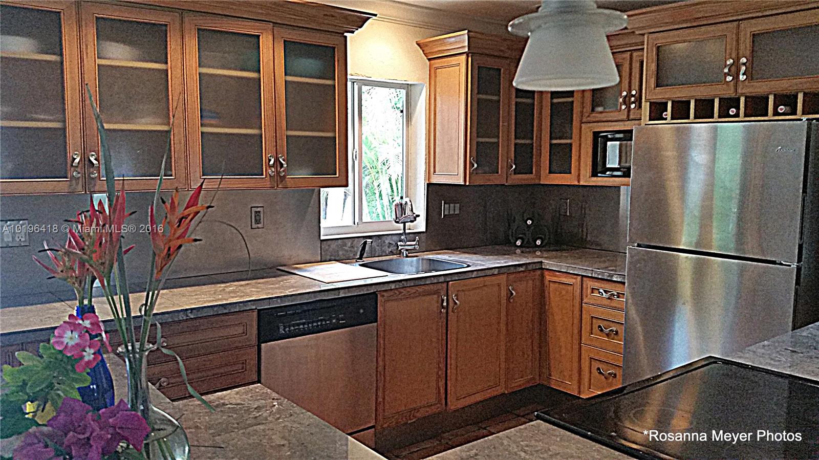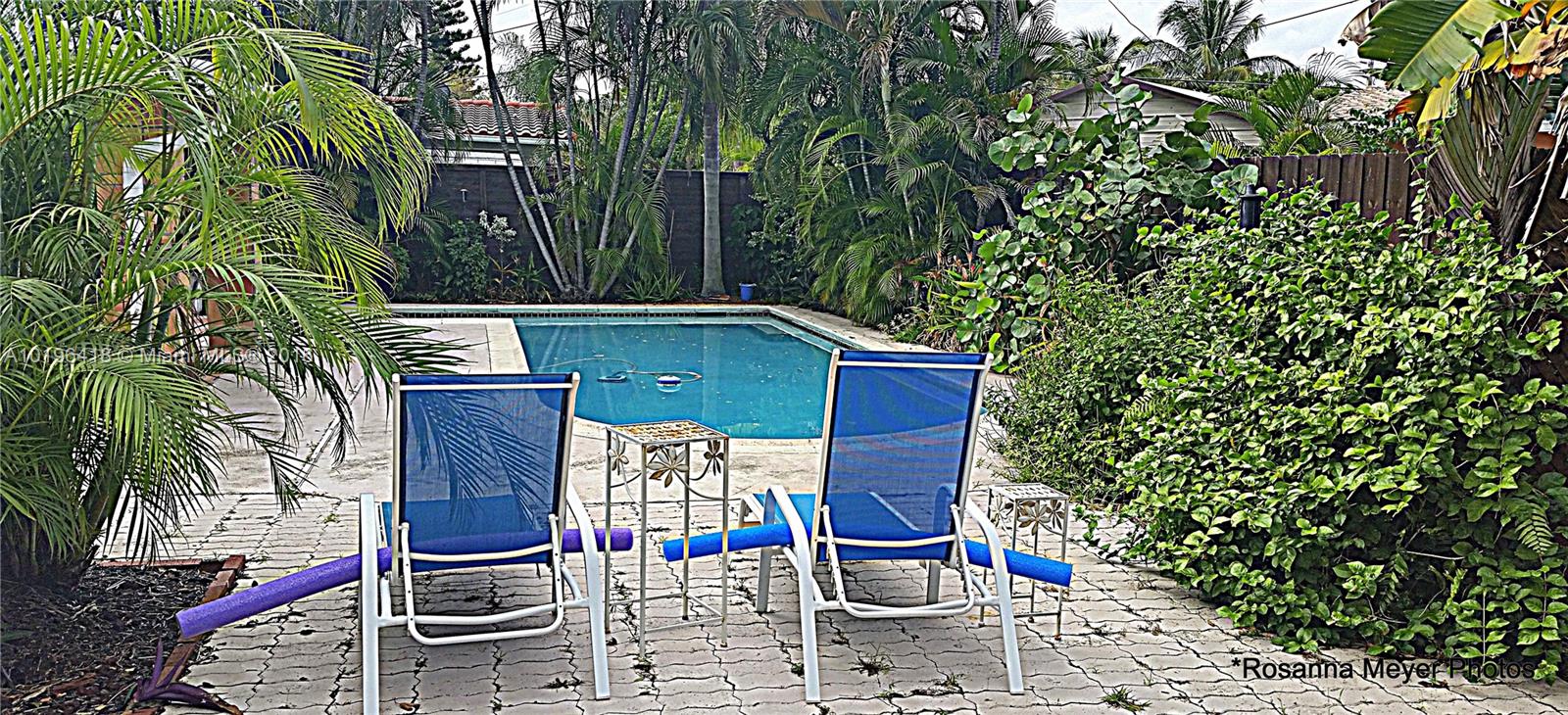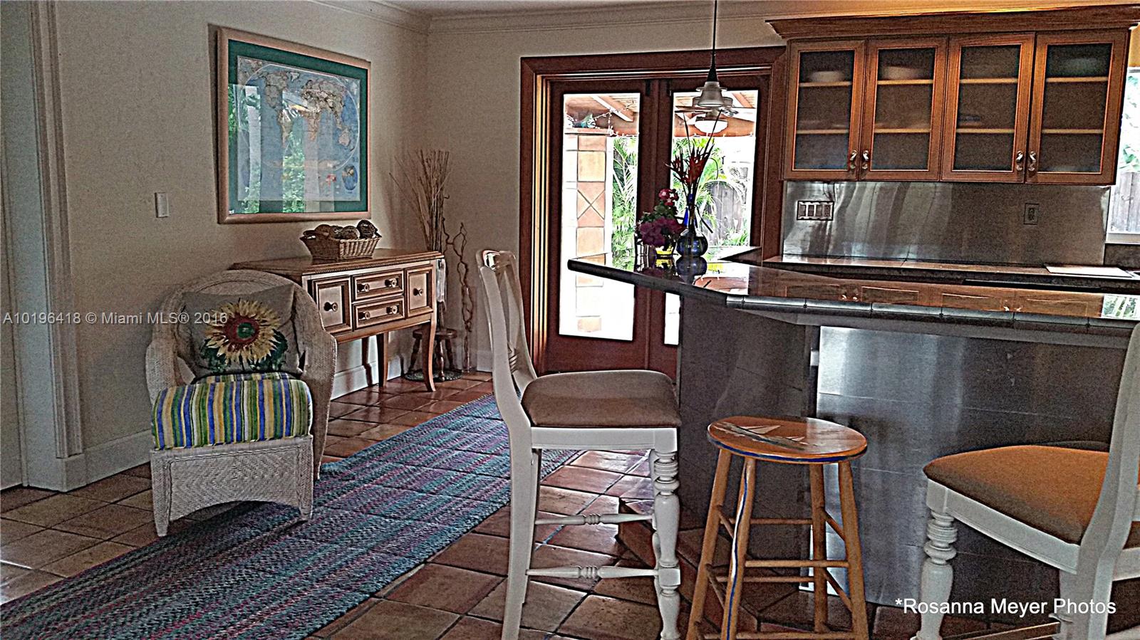 This adorable bungalow offers a private setting, renovated 2 bedroom/1 bath home with many upgrades throughout; kitchen with granite tile counters, stainless appliances, updated bath, Spanish tile flooring throughout, Lennox HVAC system, GE electrical panel with an adapter for a mobile generator(included), washer/dryer. French doors can be opened to enjoy the sunny, breezy weather covered patio or swim on your own pool. Wood Fence surrounds this tropical landscaped garden. +- 2 miles to the beach.
