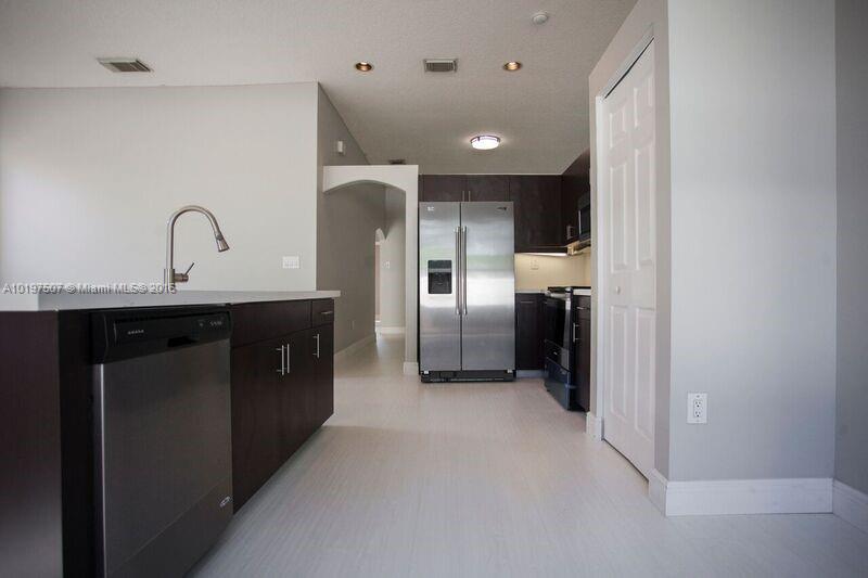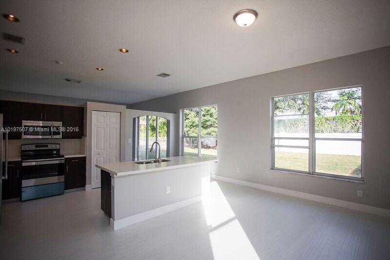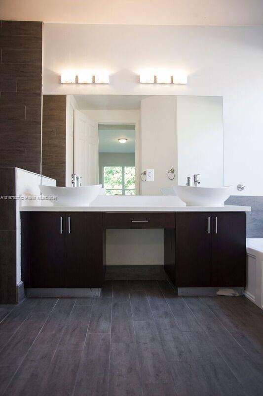 So Hot! Super Modern 3/2.5 remodeled home in Miramar with huge backyard! House has white wood floors throughout the home! Bathrooms have gray wood tile throughout with modern vanities w/ white quartz countertops and bowl sinks and steel faucets! Modern Open Kitchen w/ black cabinets, new stainless steel appliances, and white quartz countertops and Island! New Washer+ Dryer! Freshly painted throughout! New Lighting! Gated Community with all the amenities in amazing location!