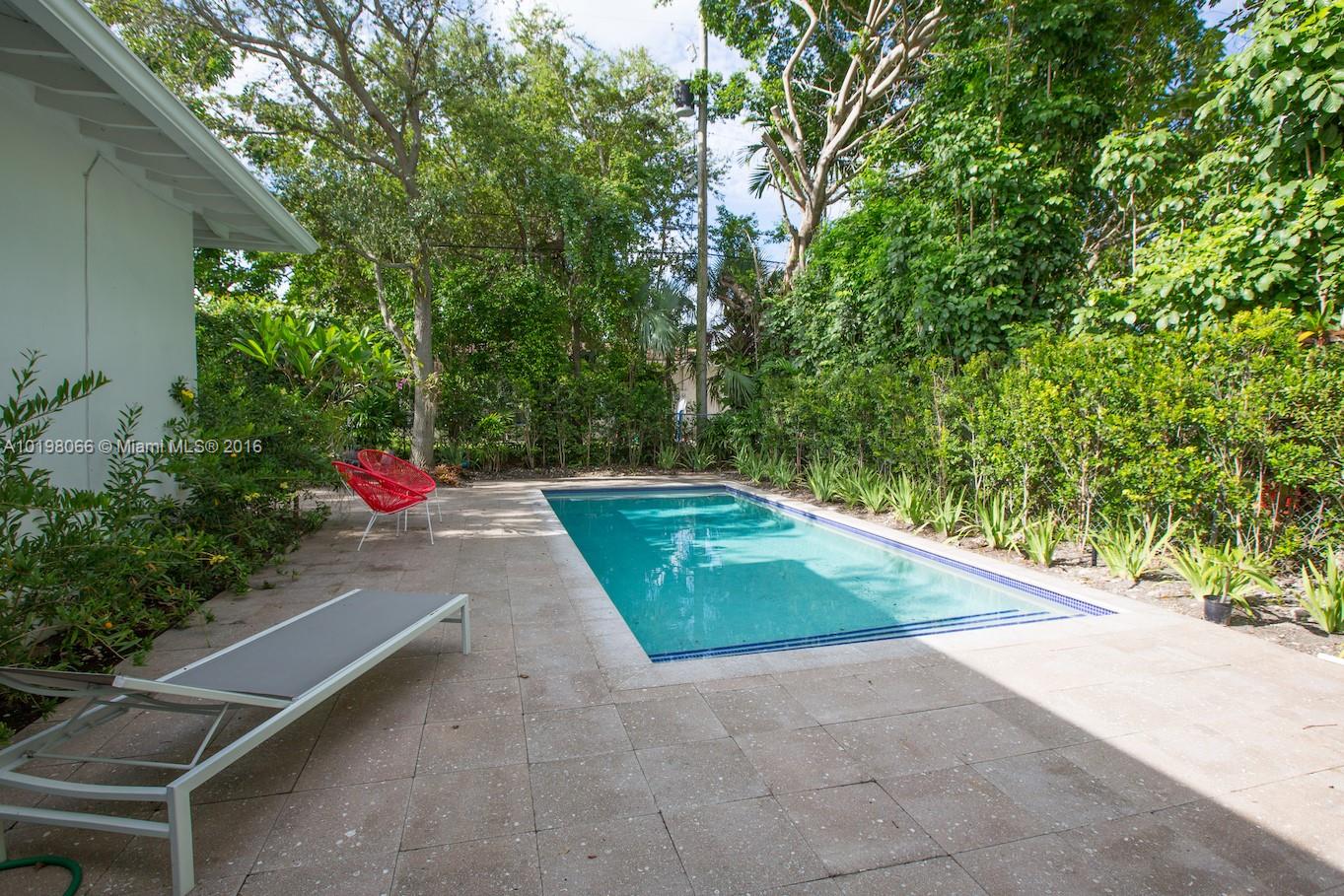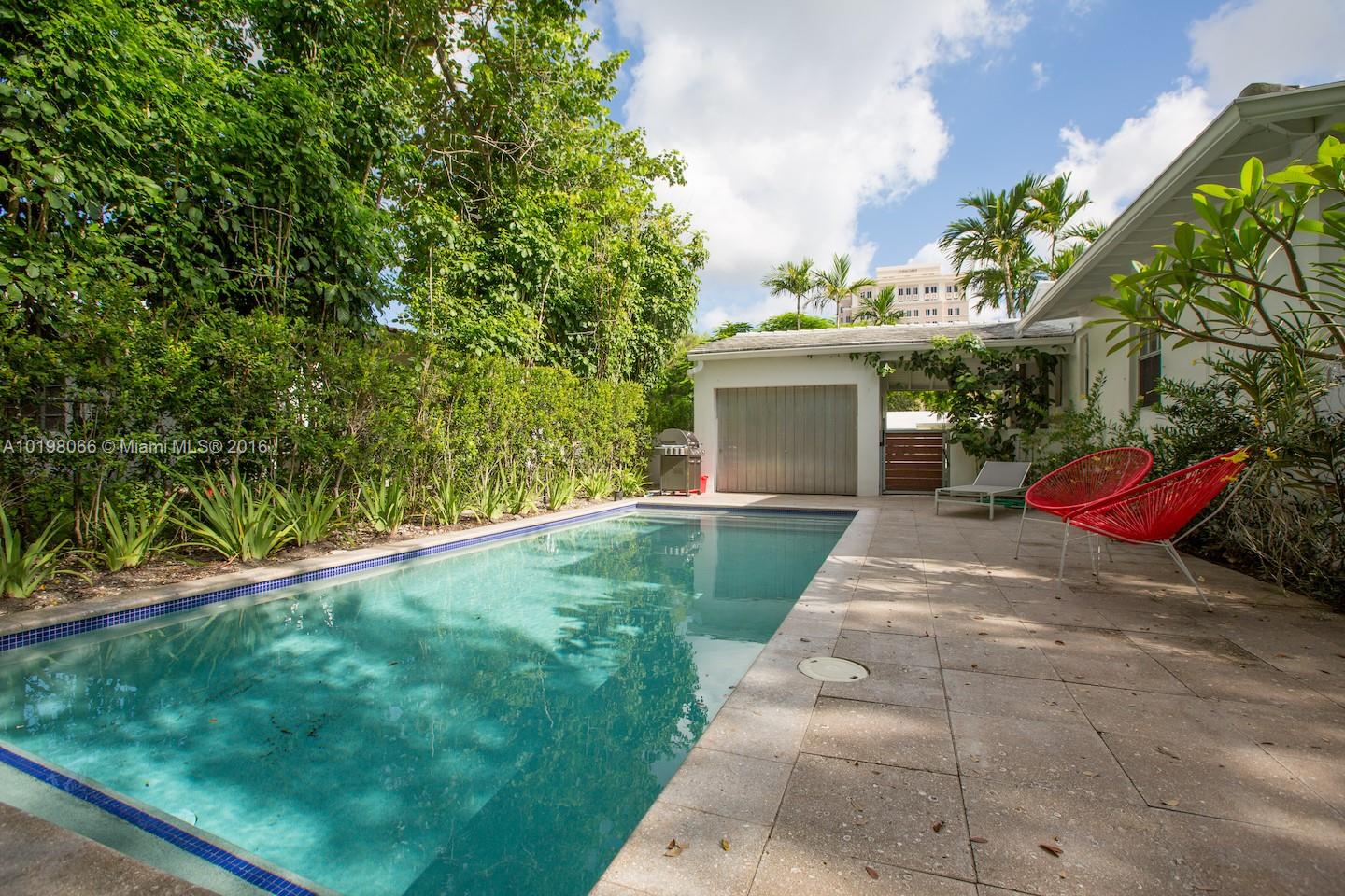 Beautiful Mid-Century modern home in the heart of Coral Gables. Live the urban lifestyle, walk to coffee shops, restaurants and shopping. Just 10 mnts from Airport and the beaches. 2beds/2baths w 3rd room for office/den or third bedroom. Hard wood floor, cathedral ceiling, original French door, salt water pool with cabana. Stainless steel appliances, induction range, LED lights, wine cabinet and more. Zen modern landscaping. Youtube full address to Watch an HD Video on this home