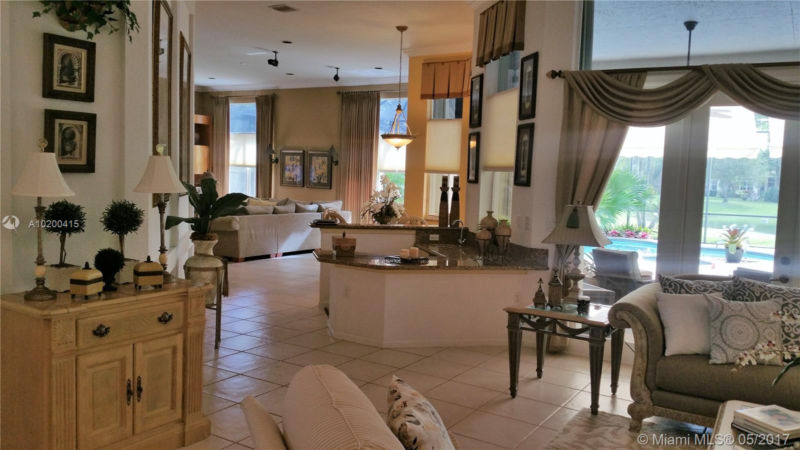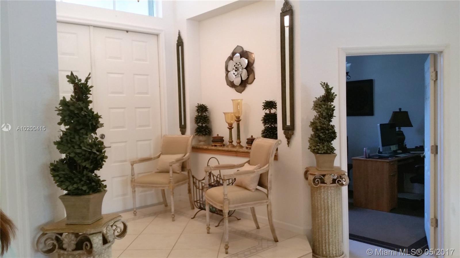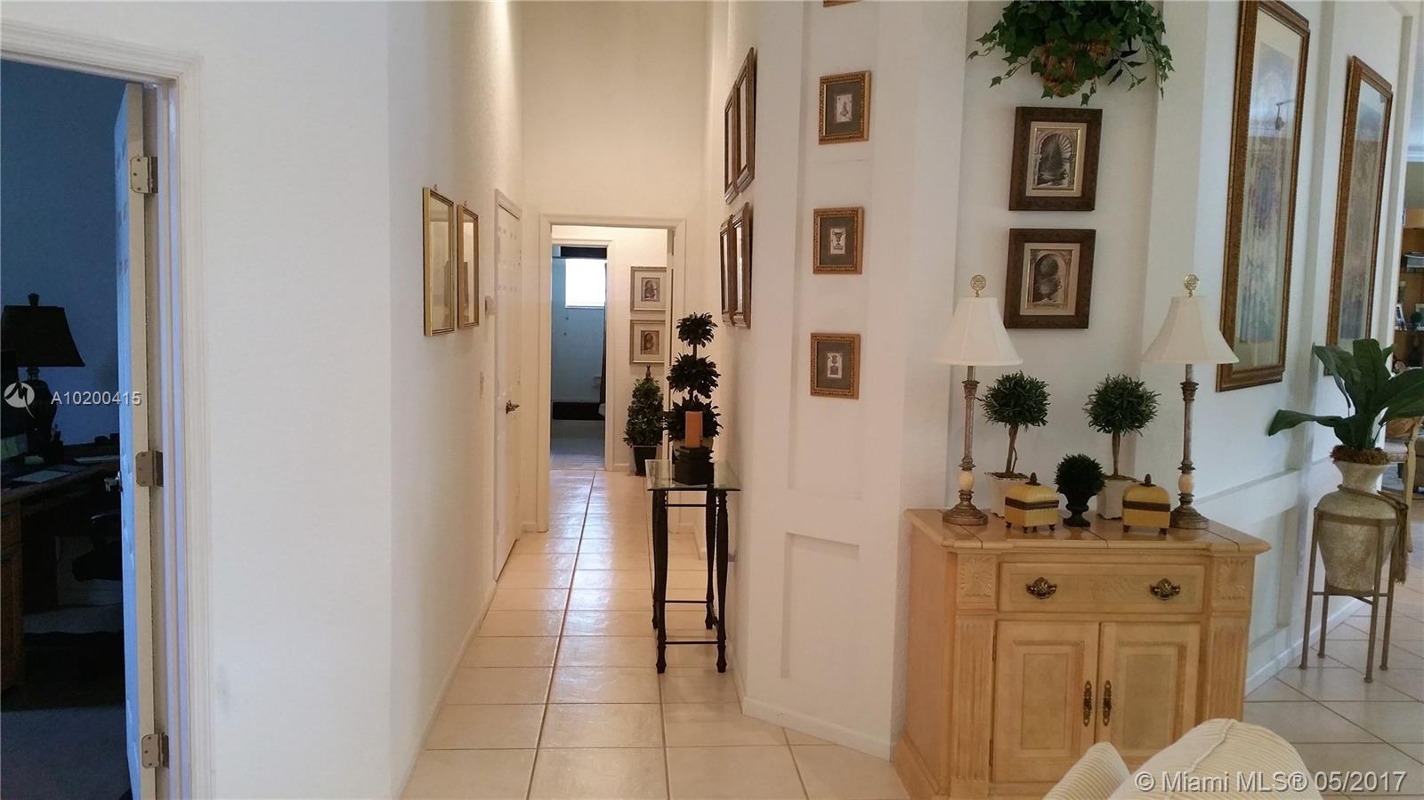 Stunning spacious corner Lake home features 1 story 5 Bdrm 4 Bath , 3 car garage, with open terrace screen in pool with water fall over looking serene lake. This amazing home is equip with top of the line appliances, huge entertainment room with wall to wall unit with TV and surround sound and DVD and CD storage included. Gourmet Kitchen W/ Granite counter top, breakfast nook & wet bar.Crown molding,accordion shutters. One of a kind Bright and clean spacious home. a must see