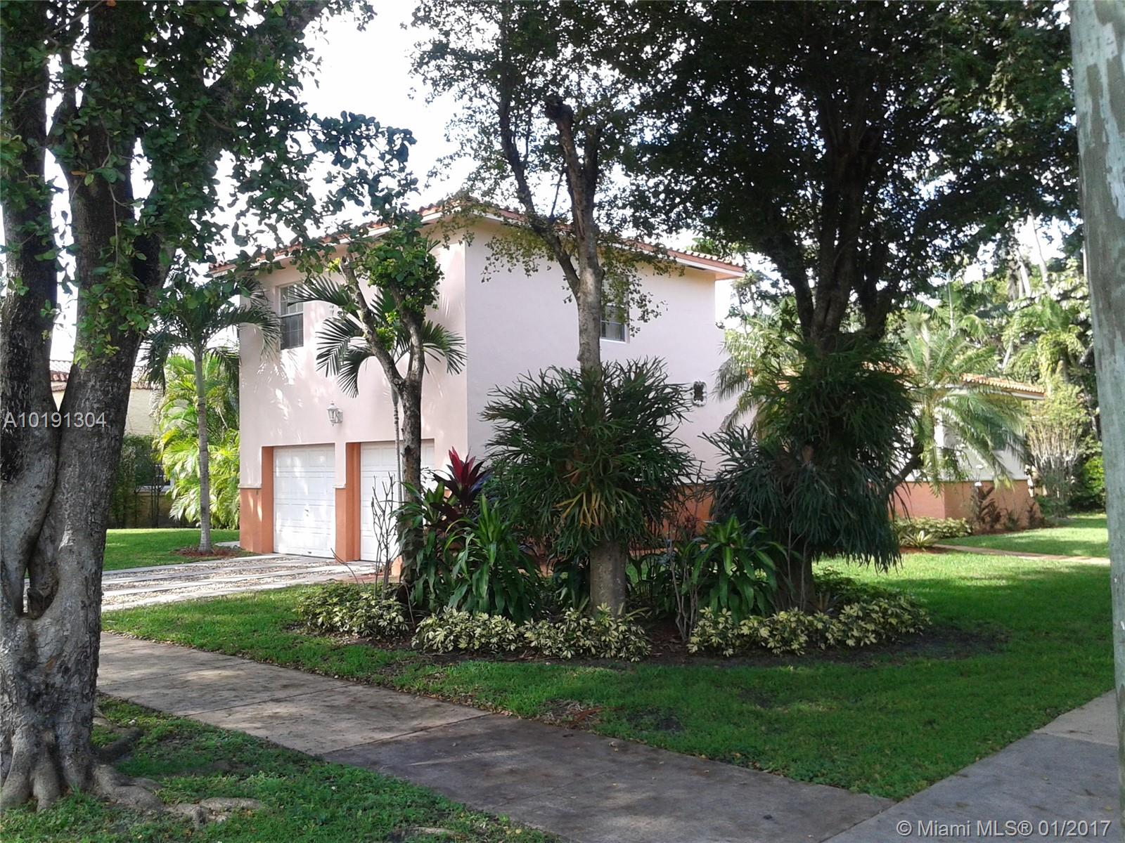 Updated two story unit 3 Beds(2 large plus den), in desirable Coral Gables!!. Mediterranean Style with a great floor plan, beautiful kitchen with brand new stainless steel appliances, water filter for all the house, bathrooms completely renewed, large bedroom in the first floor, master & den upstairs. Original wood floors and tile, 2 car garage plus 2 parking spaces. Corner unit with double lot site 9,300 sf. Amazing landscaping, with water well sprinkler system, lovely patio deck & Jacuzzi. A Must see!!