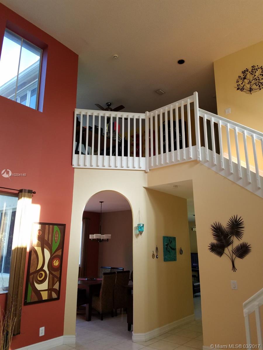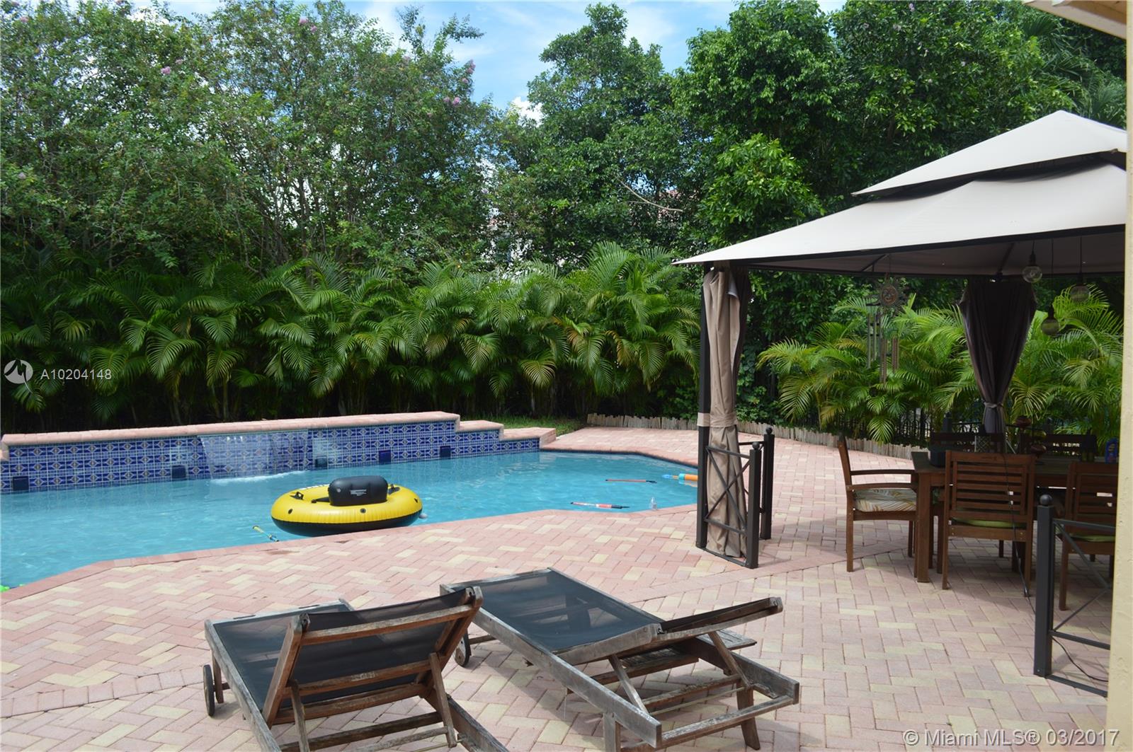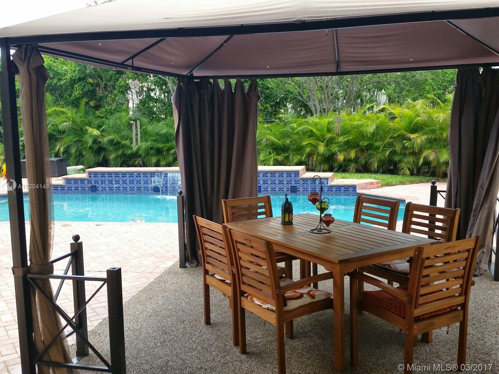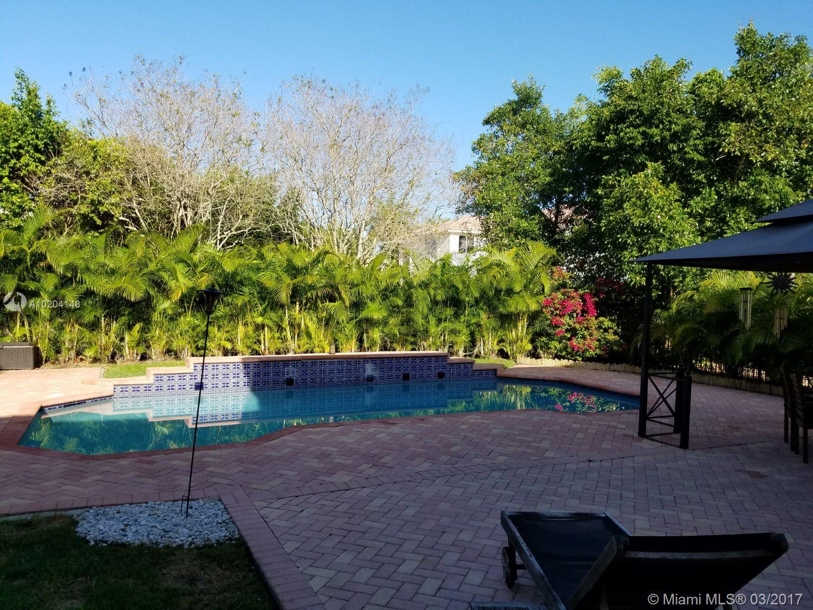 Beautifully maintained home ready for a family located in a gated community. Tile floors on first floor, Laminated floors on 2nd floor, granite counter tops in the kitchen, stainless steel appliances. French doors to the patio. Beautiful pool area with gazebo. All bathrooms remodeled. Excellent Schools A+. Community has private playground, renovated basketball and volleyball court. Security cameras in the neighborhood.