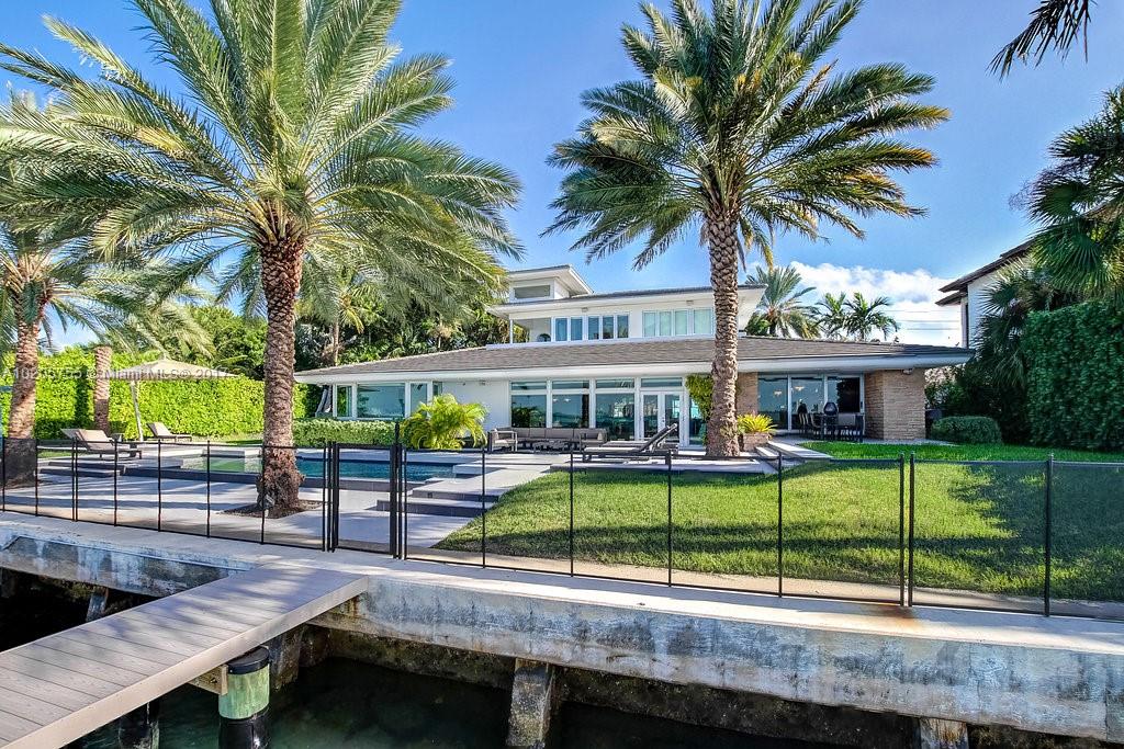 Unobstructed wide bay views offering 95 feet of waterfront on 16318 sq ft lot in a gated and secure Miami Beach community. This spectacular mid-century modern home features an open living area, spacious rooms.The oversized gourmet kitchen is outfitted with high end appliances .Marble bath & wood floors. Dock with boat slip, huge pool overlooking the Water.