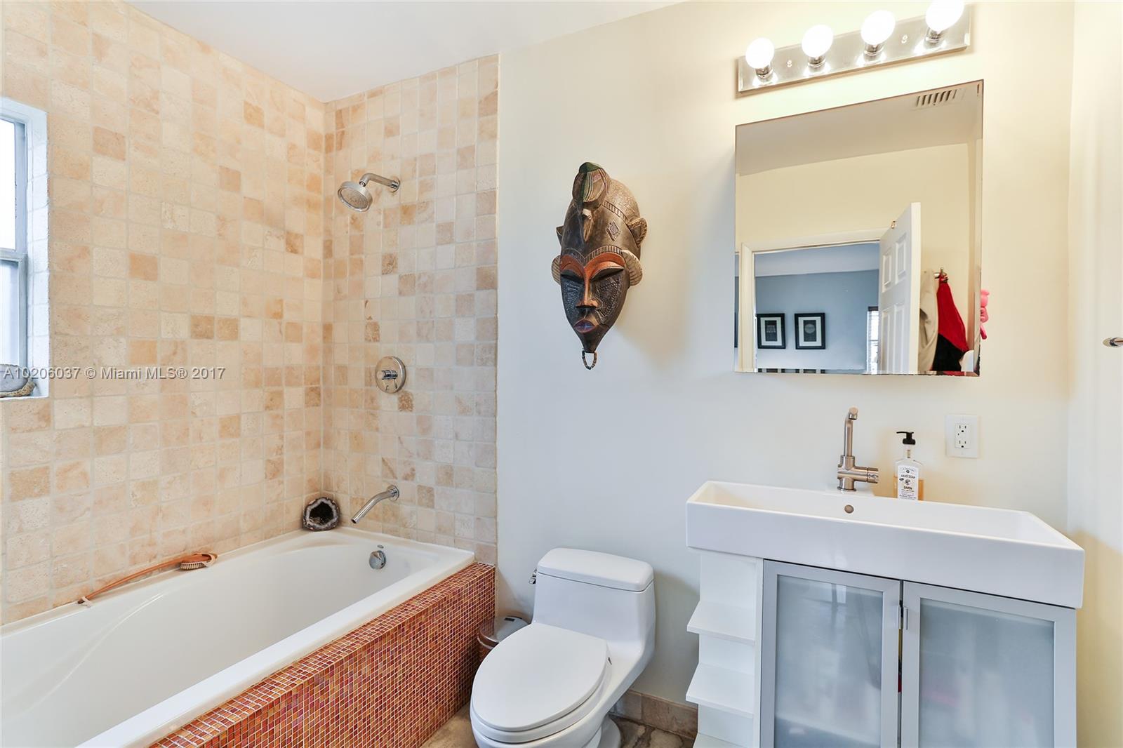 Walk to the beach from this lovely Surfside home with 3 bedrooms, 2 bathrooms & garage. Bright and spacious living & dining areas flow into the open, renovated kitchen with stainless steel appliances & wood cabinetry. Unique exposed beam ceilings, tile & wood flooring throughout. Private, fenced backyard with a wood deck perfect for entertaining or relaxing. Only 2 blocks to the ocean & community center/pool. Walk to Bal Harbour Shops, Four Seasons, shopping & dining. Zoned for A+ Bay Harbor schools.