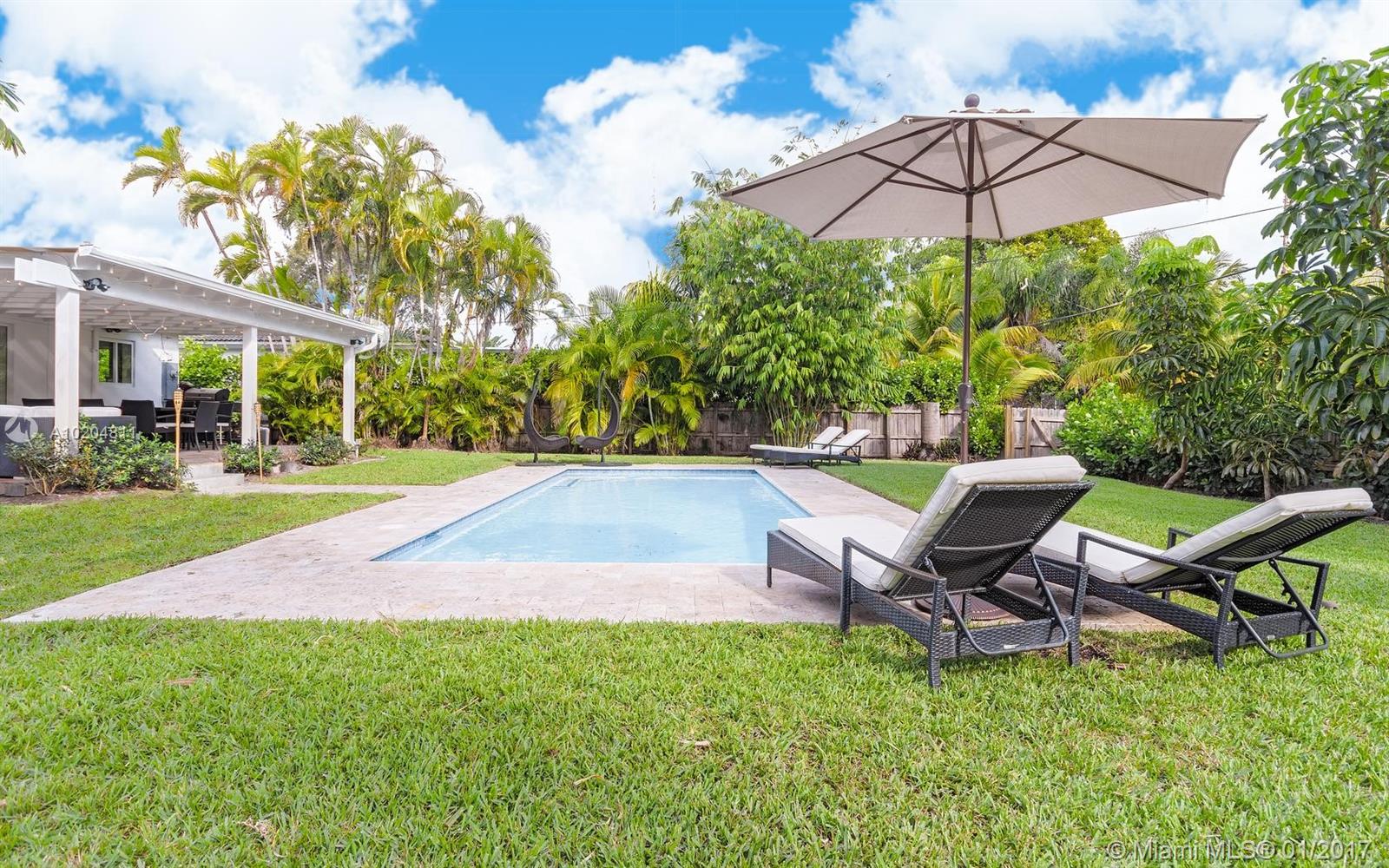 SLEEK AND MODERN WITH AN OPEN FLOOR PLAN ON A QUIET STREET IN MIAMI SHORES. 3 BEDROOMS AND 2 FULL BATHS PLUS A SMALL OFFICE SPACE. ATTACHED ONE CAR GARAGE, LARGE FENCED YARD, BIG COVERED PATIO AND POOL. BEAUTIFUL WHITE PORCELAIN TILE FLOORS THROUGHOUT. MODERN OPEN KITCHEN GREAT FOR ENTERTAINING. ALL LIVING SPACES OPEN TO THE PATIO AND POOL. BIG MASTER BATH WITH DUAL SINKS AND BIG SHOWER. GOOD CLOSET SPACE, IMPACT WINDOWS AND ALARM SYSTEM. THIS HOME IS MOVE IN READY.