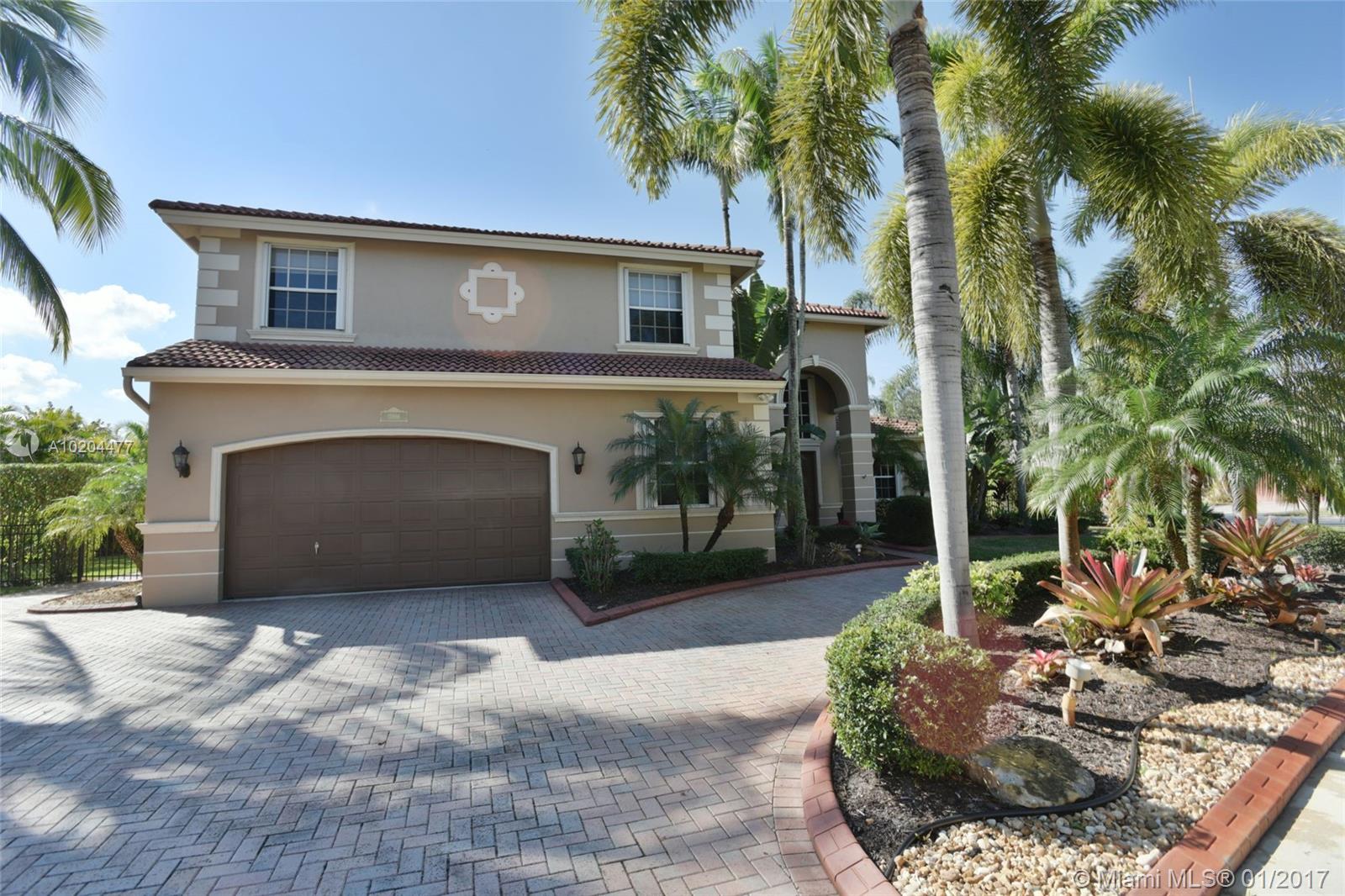 PEMBROKE SHORES ESTATES 24 HR GATED COMMUNITY, 5 BEDROOM 4 1/2 BATHROOMS, LG POOL ON A 17258 SQ FT LOT ON LARGE CORNER LOT. POOL DIAMOND BRITE 3 YRS OLD WITH CHILD PROOF GATE. ONE BEDROOM DOWNSTAIRS AND TWO MASTER SUITES SIZE BEDROOMS UPSTAIRS PLUS TWO LARGE BEDROOMS. AUTO SPRINKLER SYSTEM, ACCORDION SHUTTERS, COVERED PATIO, UPGRADED KITCHENS WITH WOOD CABINETS AND GRANITE COUNTER TOPS, SS APPLIANCES, WOOD FLOORS THROUGHOUT THE SECOND FLOOR AND VOLUME CEILINGS. A RATED SCHOOLS, DESIRABLE COMMUNITY.