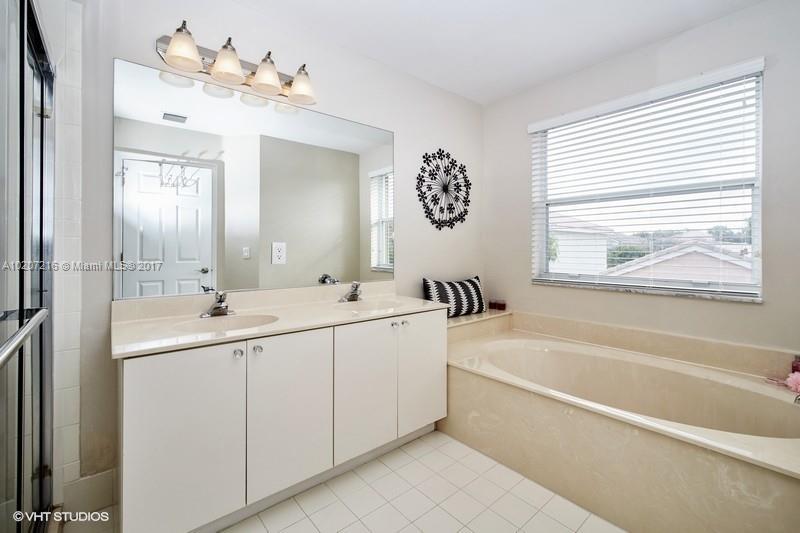 The homeowners spared no costs in this impeccable 4/2.5 home located in a cul de sac. Open concept floor plan makes for entertaining and an inclusive family area and kitchen with granite counter tops and stainless steel appliances. The den features a tiled wall that makes the room warm and inviting. Huge master suite with 2 walk-in closets. Tiled garage. Accordian shutters and high impact doors. Gated community with pool, tennis court, basketball court, clubhouse and gym. What more can you ask for! Security video recording on premise.