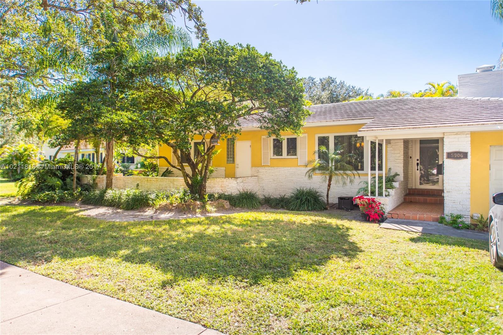 Lovely mid-century home on a quiet street in a coveted South Gables location. Light filled rooms w/ wood floors, fireplace & vaulted wood-beamed ceilings. Updates include all electrical, all appliances, marble master bath & impact glass. Classic white kitchen cabinetry w/ new tile flooring & butler’s pantry. Spacious family room with floor to ceiling glass that opens to expansive outdoor patio & garden. Room for pool. Close to the Grove/Gables shopping & dining and minutes to downtown, MIA & the Beaches.