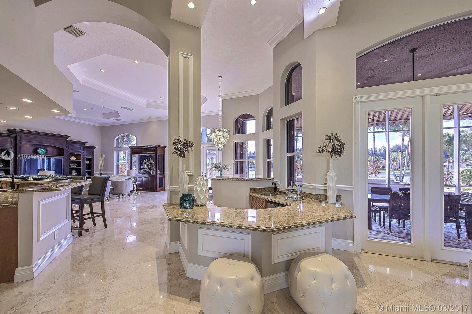 STUNNING CUSTOM WATERFRONT POOL HOME SITUATED IN A QUIET GATED ESTATE COMMUNITY.CAPTIVATING 5/4 HOME FEATURES WROUGHT IRON DOORS, VAULTED CEILINGS, CROWN MOULDING, WET BAR, MOTORIZED WINDOW TREATMENTS AND A HEATED SALT WATER POOL WITH LED LIGHTING.LAVISH MASTER SUITE INCLUDES SEPERATE SITTING SPACE. BANKS OF FRENCH DOORS OPEN TO THE FABULOUS OUTDOOR ENTERTAINING SPACE GIVING A TRUE RESORT FEEL WITH A PERGOLA, BUILT IN GRILL AND FIRE PIT.CUSTOM BUILT INS, AQUARIUMS AND MORE. PERFECT FOR ENTERTAINING...
