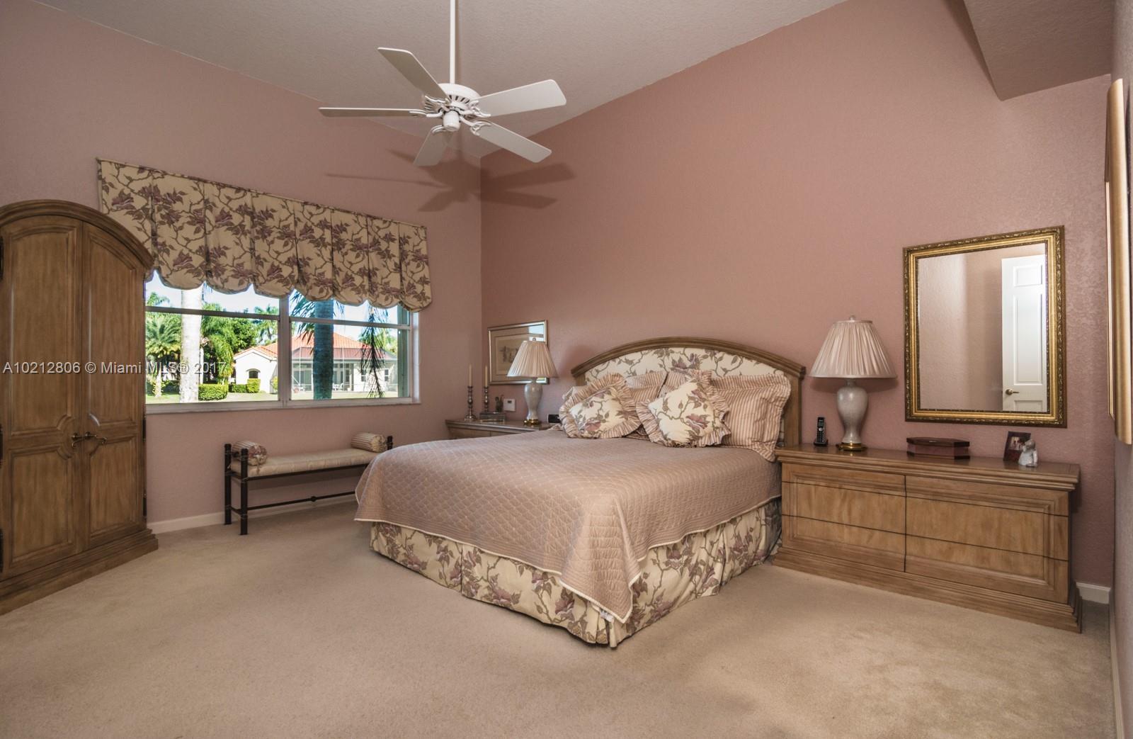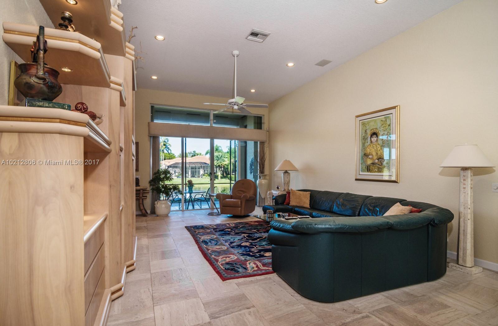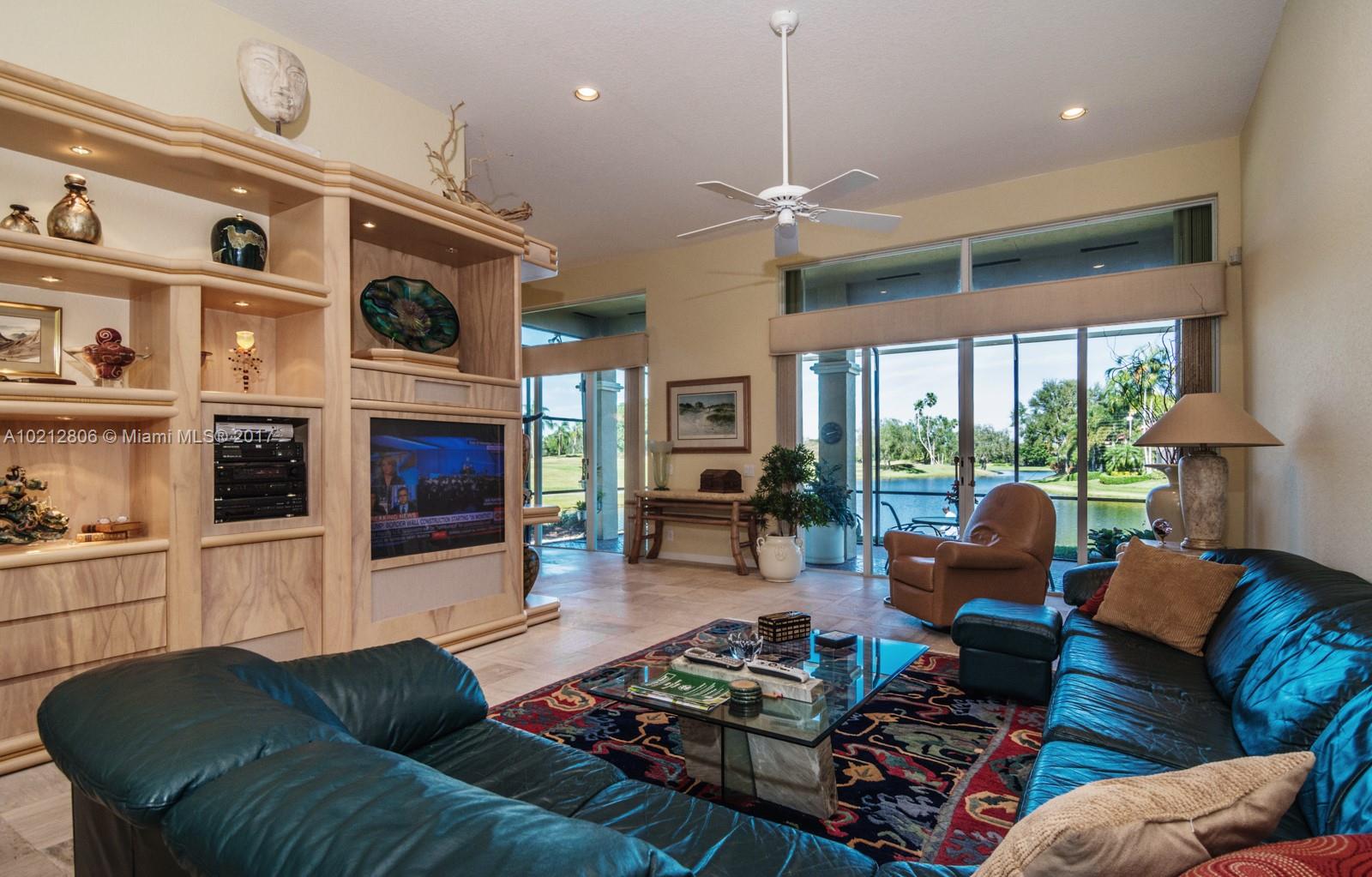 The most spectacular golf and lake views around. Enjoy Long water views from your fully screened paver patio. Wrap around water views from kitchen, great room & master bedroom. Brand New Roof 2016, New A/C, marble flooring throughout living areas. This modified model features a spacious master bedroom with volume ceilings. Secondary bedroom with it’s own bath and murphy bed. 3rd bedroom currently being used as an office with french doors to it's own private patio.