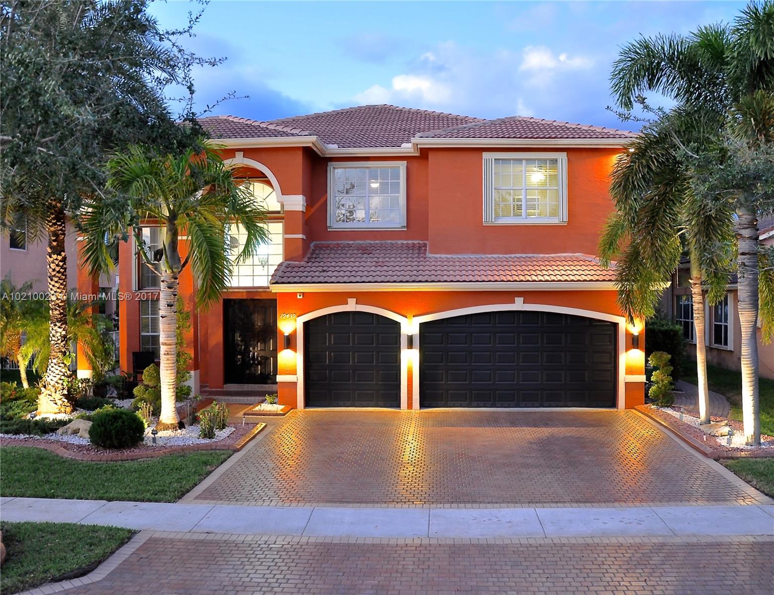 This home was inspired & designed for the Majestic Collection in Sunset Lakes. As you enter you are welcomed by an impressive grand foyer with soaring ceilings & vast windows with water views. The impressive staircase with custom iron railing makes a striking first impression. Its open & spacious floor plan makes for stylish entertaining & family living. Master suite and junior master suite have access to balcony, 3 other bedrooms are on the 2nd floor. End each day with wonderful panoramic lake views!
