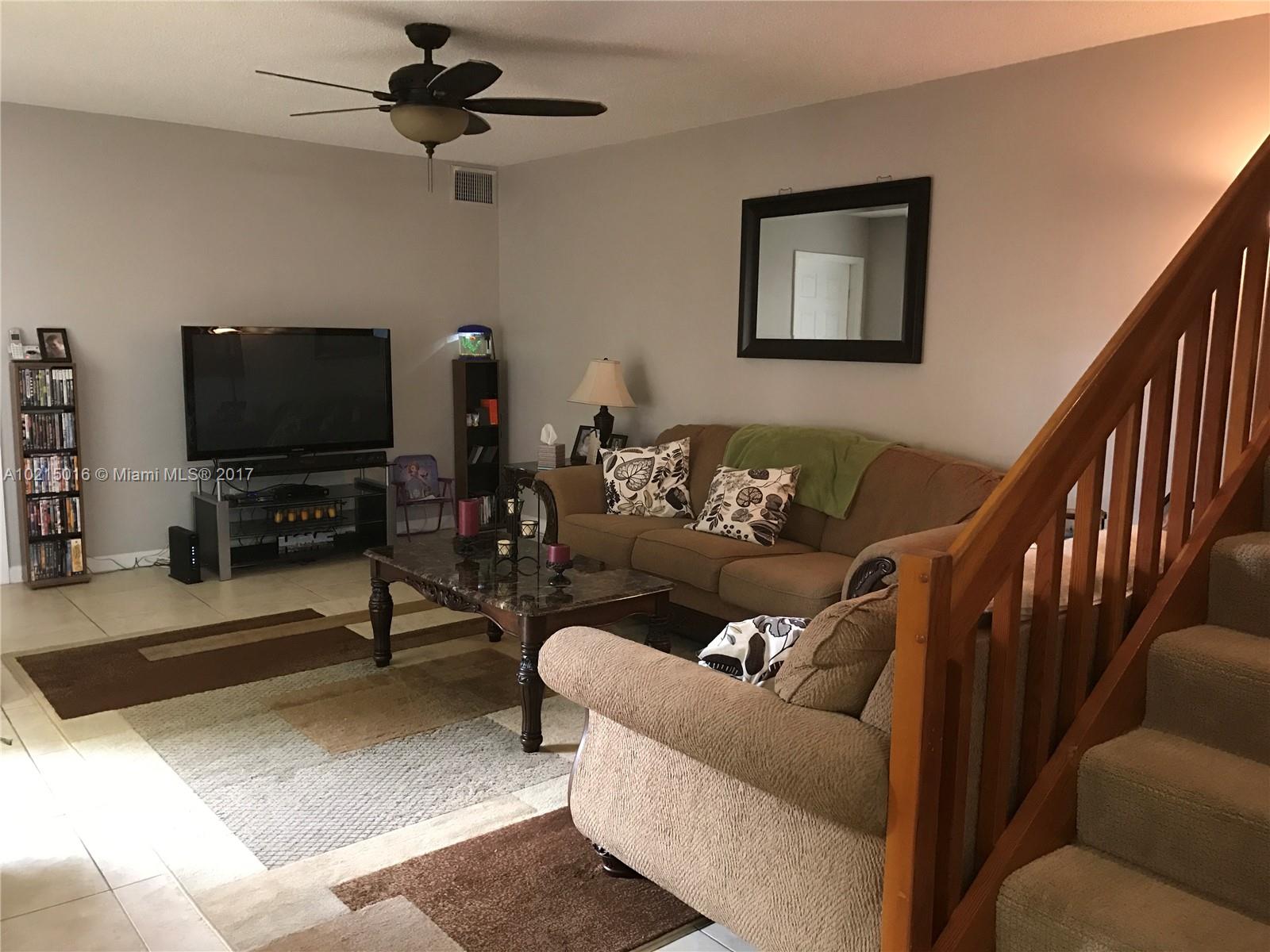 LOCATION!! LOCATION!!! GREAT 3 BEDROOM 2 & 1/2 BATHROOM TOWNHOME IN THE HEART OF DAVIE!!! THIS TOWNHOMES HAS A LARGE LIVING ROOM & DINNING AREA, LARGE KITCHEN WITH NEW SS. APPLIANCES & TONS OF CABINET SPACE. HOME HAS A HUGE MASTER BEDROOM WITH 2 WALK-IN CLOSETS & ACCESS TO THE LARGE BALCONY. THE MASTER BEDROOM & 2ND ROOM ARE LOCATED ON THE 2ND FLOOR , IT ALSO HAS 1 LARGE BEDROOM ON THE FIRST. THIS IS A GREAT PLACE TO CALL HOME & A GREAT PLACE TO START A FAMILY. NEAR SCHOOLS, HWYS, SHOPPING & MORE!