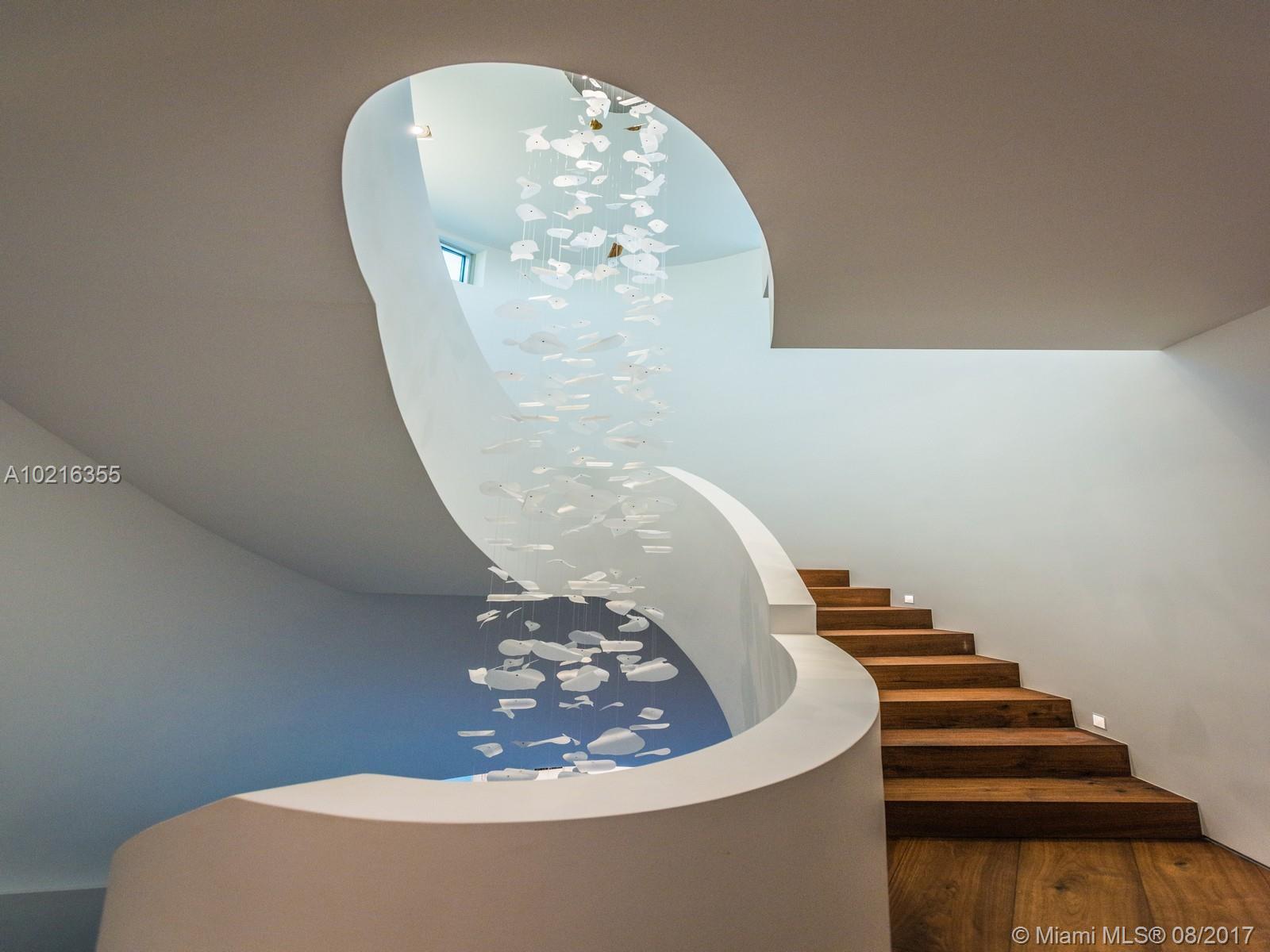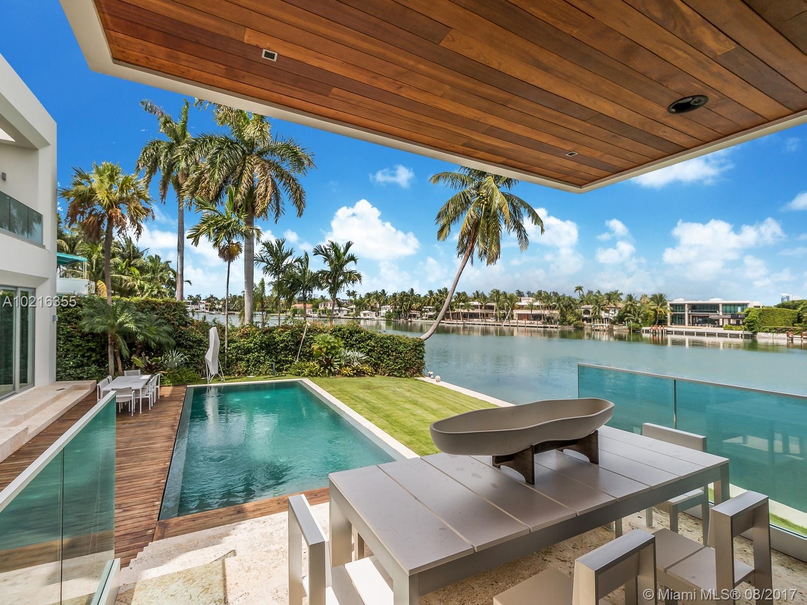 Striking modern residence built in 2013 w/150 ft of direct wtrfrnt & dock. Large lot offers wide water vus & rare dock accommodations for over 100 ft yacht. Created by sought after architect Ralph Choeff & builder Todd Glaser. Stunningly from its ground level reflection pools, light filled interiors, to the 3rd flr prvt deck, overlooking South Beach. Estate offers ideal flr plan, including a 2 bdrm attached cottage, maids quarters, 1 bdrm detached guest or Captain quarters, exercise atrium & custom garage