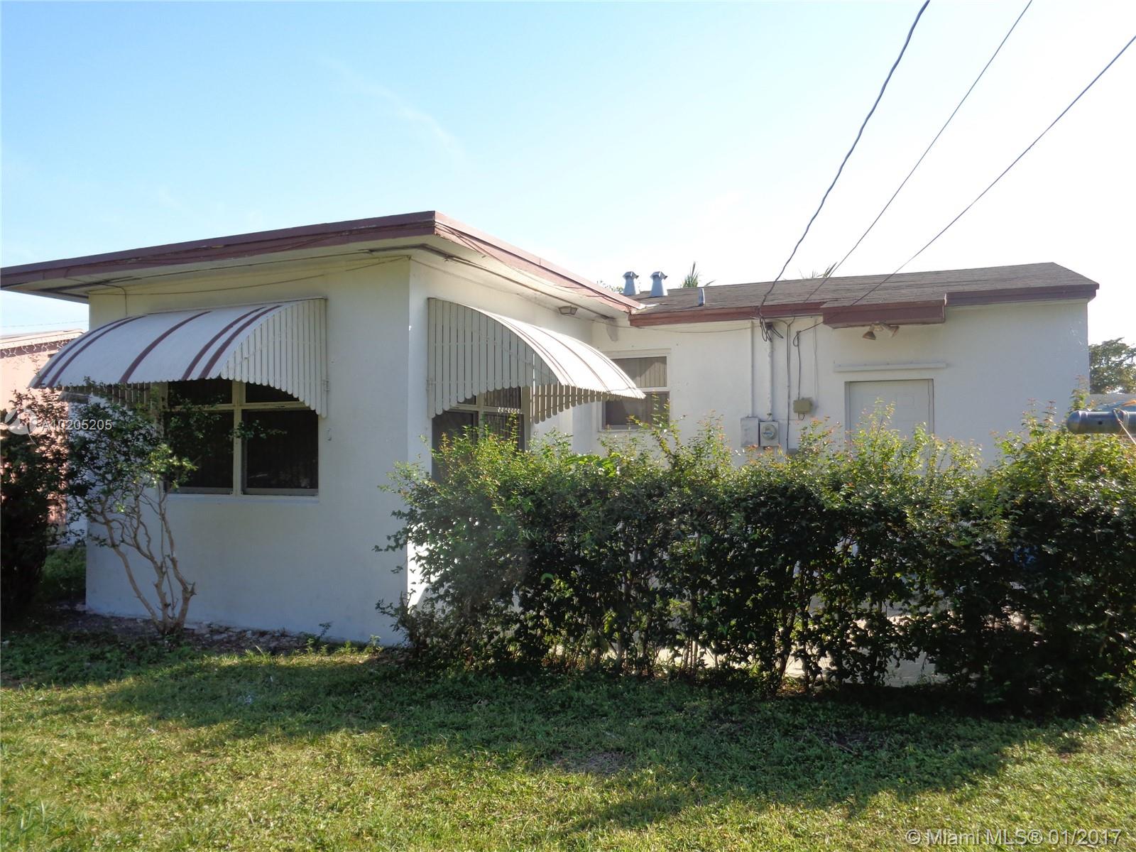A well cozy maintained home on a lot to either expand or have a swimming pool, this home offers a nice floor plan with possibility to be converted easily to a 3 bedroom and 2 full bath home or just enjoy the current floor plan with huge formal dinning and living room areas. Terrazzo floor throughout, having car garage with additional parking spaces, new vertical blinds, newer updated windows, freshly painted, situated on a quiet street, easy access to I-95 and beaches.