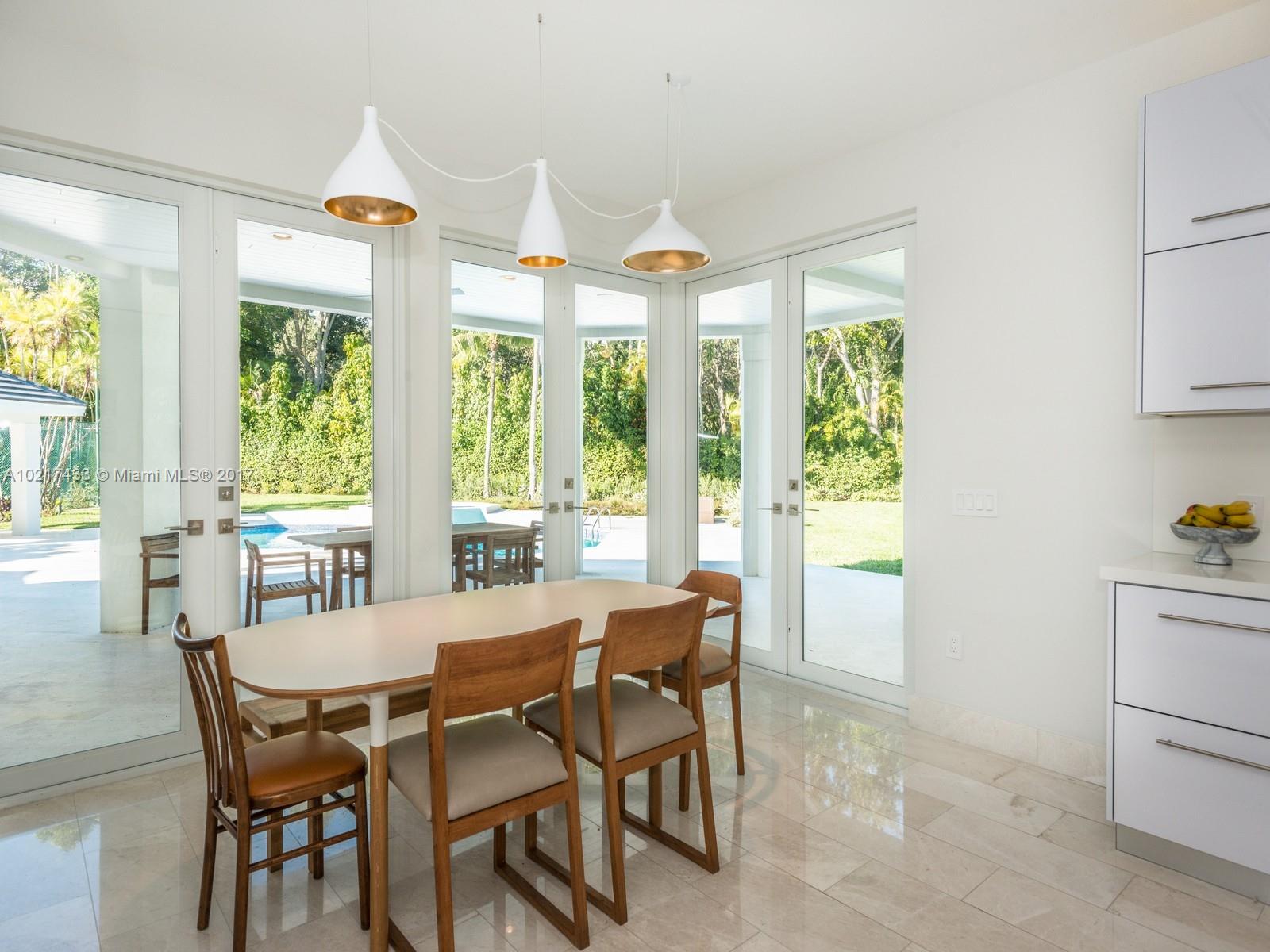 Updated Contemporary Estate nestled in North Pinecrest. Features include Birch Wd Floors in the Formal Areas, Marble flrs in Kitchen/bathrms, expansive open space, indoor laundry rm, impact , fireplace. Custom Kitchen includes Sub-Zero with wine cooler, wolf cooktop/convex micro, walled oven, cooktop/hood, cooking island, marble tops, breakfst nook. Second floor features Birch Wd Floors with oversized Master Suite /6th bedrm. Master bath w/ sep tub/shower/marble. Balcony overlooks tennis Court/Acre+ oasis