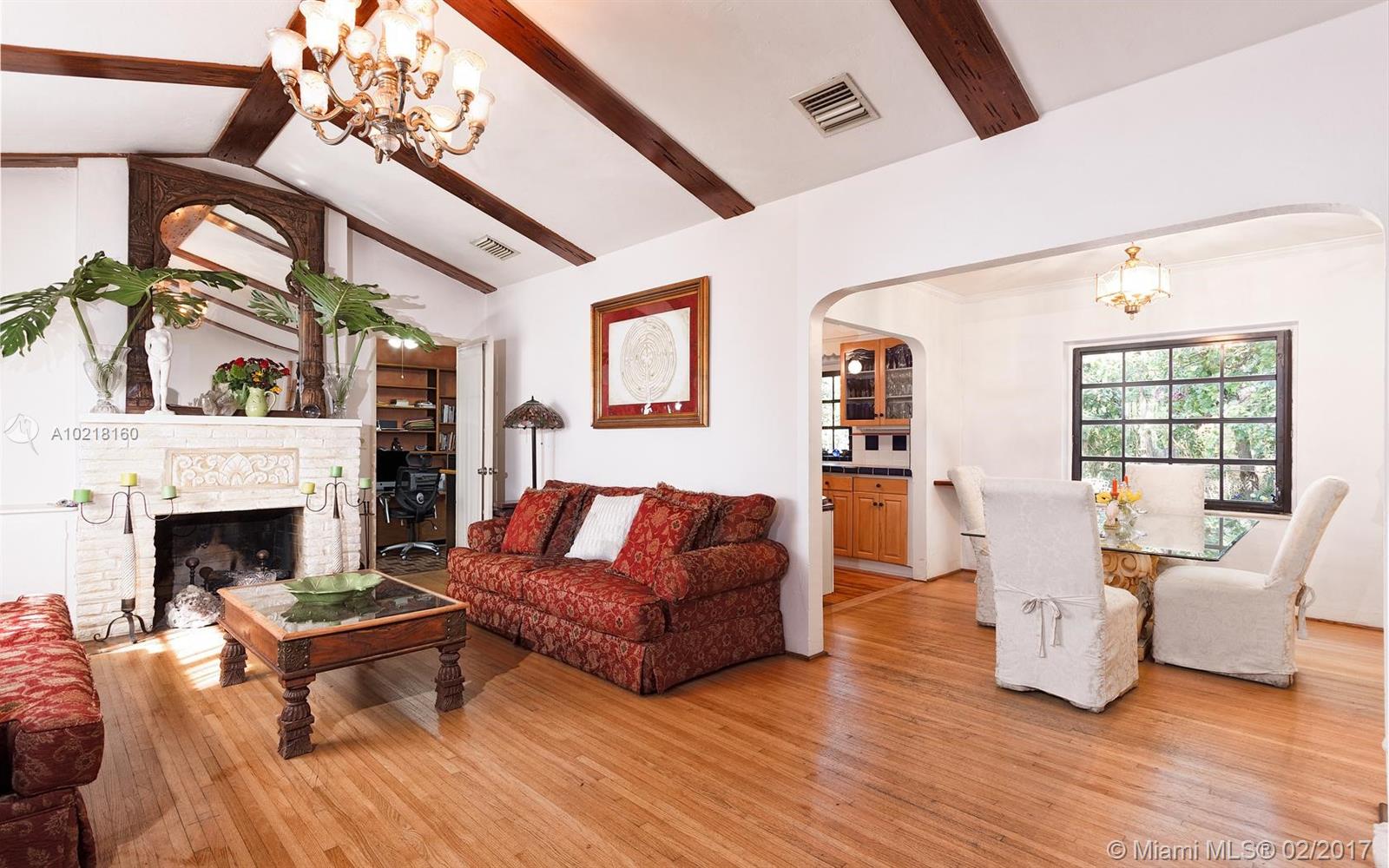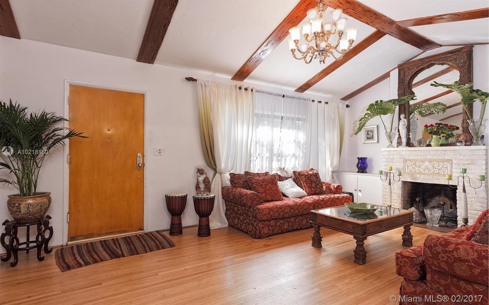 Charming mid-century Miami Shores home with classic architectural details, priced for sale!. Huge eat-in kitchen, living room w/ working fireplace, family room, 3 br split floor plan + an office. House has been perfectly preserved. Enjoy great outdoor entertaining space. House sits on an oversized 11500 SF lot w/room for a pool.Fantastic location, walk to Starbucks, restaurants, shops, with access to Miami Shores CC & Swim Club for residents. Make this your dream home!