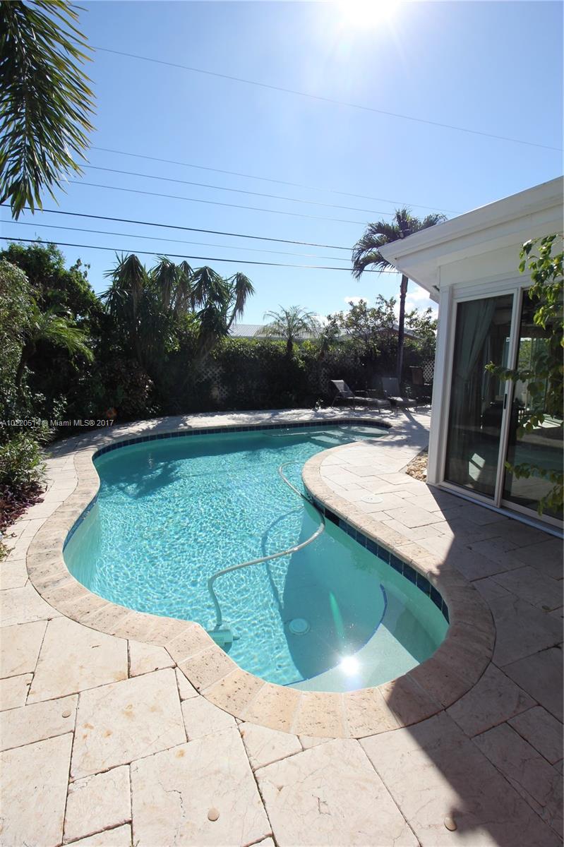 Wonderful house for entertaining as it features a 500+ sq. foot Florida room with beautiful wall of windows looking out onto new pool & lush landscaping. Salt water Pool with Jacuzzi jets & has a spacious & open pool deck w/high-end flooring. Stunning open kitchen w/granite, newer cabinets and stainless steel appliances. Outside shed for extra storage. Close to the beach, Fort Lauderdale airport and restaurants and shops.