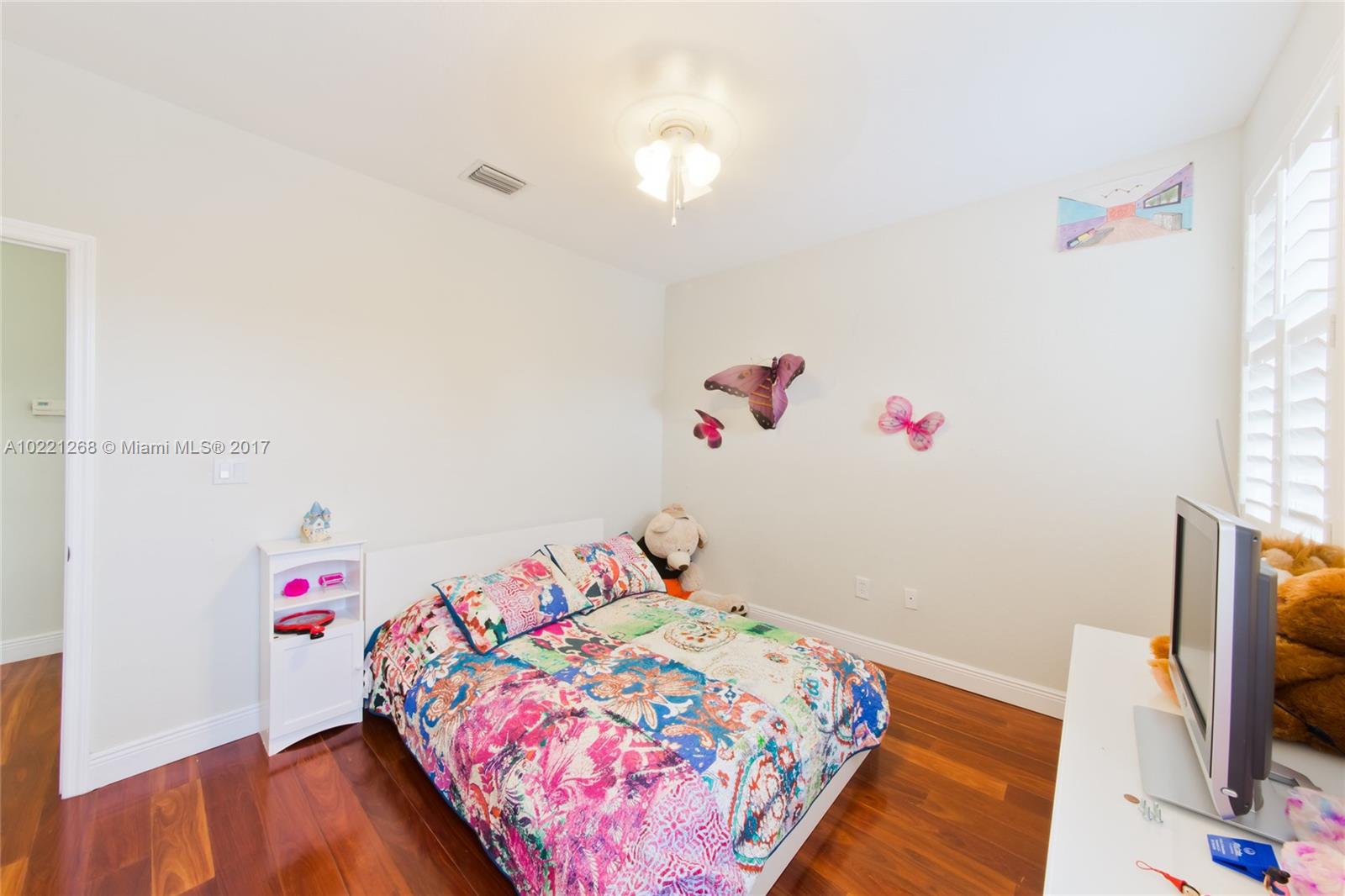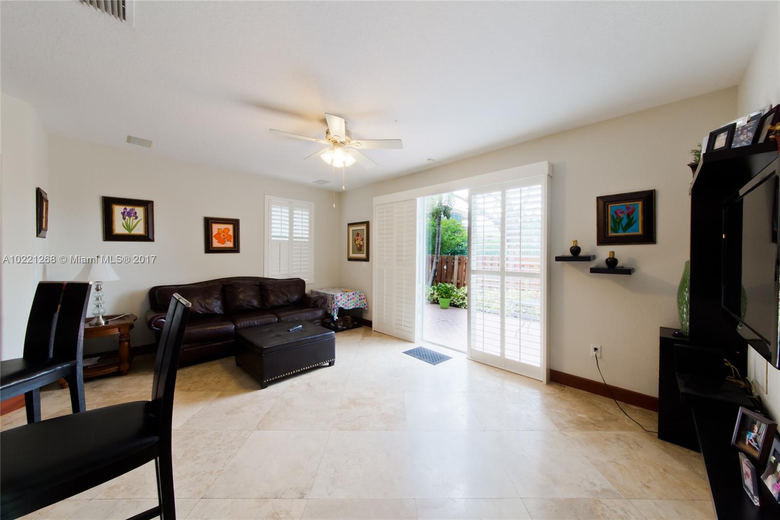 This 4 bedroom 3 bath home w/1 full bed & bath downstairs & California closets in all bedrooms, is in impeccable conditions. Brazilian wood floors and travertine thru out, plantation shutter's in all rooms, kitchen has granite counter tops. Professionally landscaped yard w/large patio & awning. Tiled garage w/wall to wall cabinetry and extra fridge for large family. accordion shutters & much more. walking distance to A+ schools, Island of Doral Club for more information please contact listing agent.