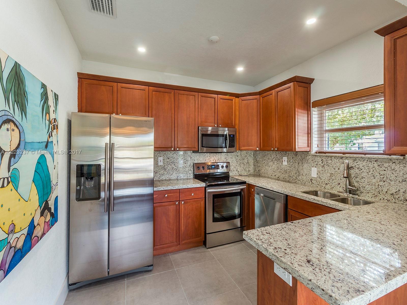 Beautifully updated 3/2 corner lot home features bright & open LR/DR/FR/kitchen w/ easy flow accented by decorative fireplace & stained hdwd flrs. Smartly-designed kitchen w/ granite counters, SS appl & porcelain flr. Split bdrm plan & modern baths w/designer fixtures, rain showers & porcelain. Large yard w/mature oaks offers park-like feel—relax and enjoy from a private patio. 1-car garage, alarm. Great Miami Shores amenities & just minutes from arts districts, Barry University & beaches.Move in ready!
