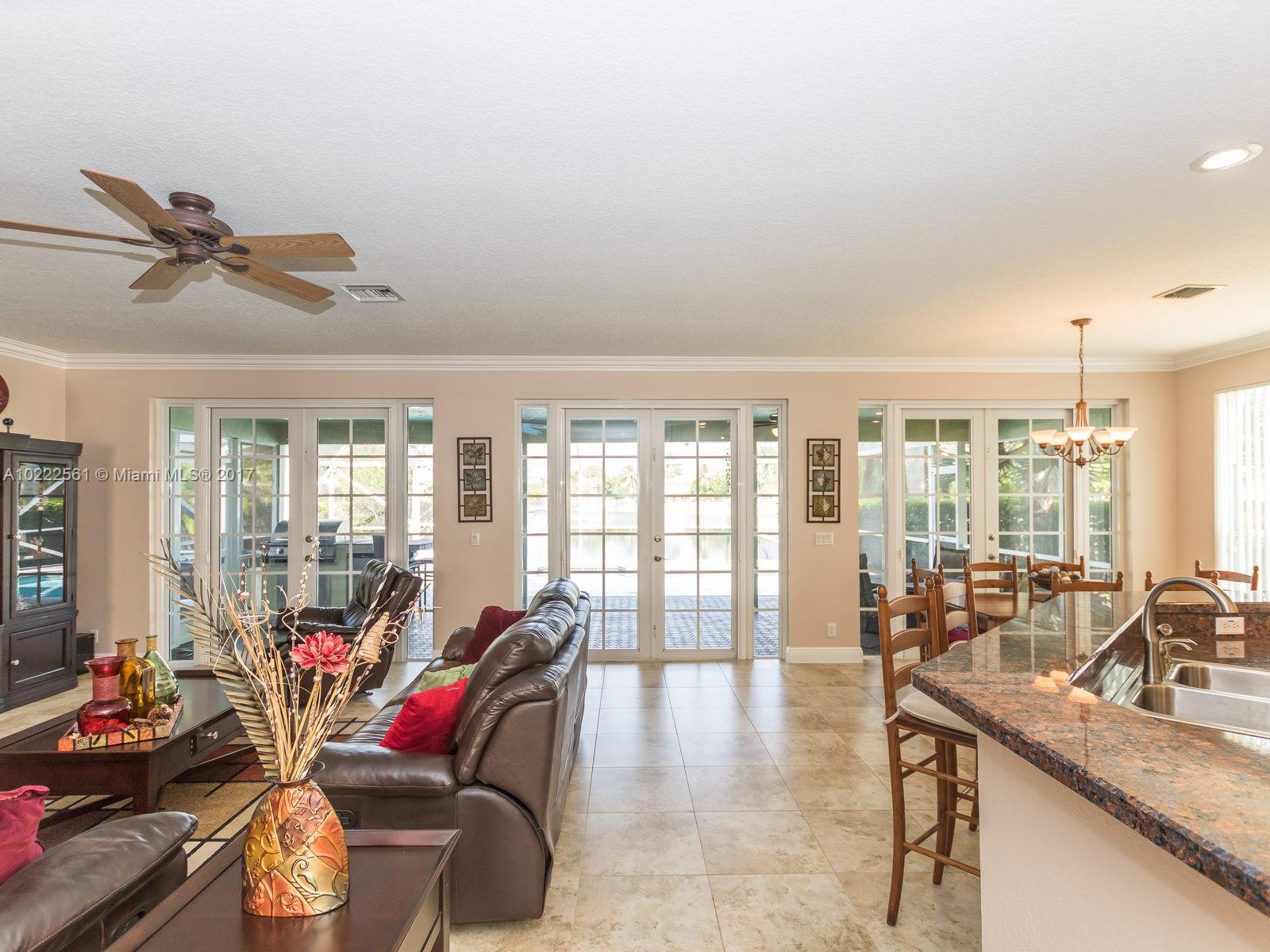 BEAUTIFUL UPDATED 5 BEDROOM HOME WITH POOL ON LAKE WITH ONE BEDROOM DOWNSTAIRS; FEATURES INCLUDE NEUTRAL TILED AND WOOD FLOORINGS IN ALL LIVING AREAS; OPENED GOURMET KITCHEN WITH GRANITE COUNTERS, TILED BACKSPLASH AND 42' CABINETS; IMPACT FRENCH DOORS IN FAMILY ROOM OVERLOOKING LARGE COVERED PATIO, POOL AND VIEW OF LAKE; UPDATED BATHROOMS; CROWN MOLDING; HOME HAS BEEN METICULOUSLY CARED FOR AND UPDATED BY ORIGINAL OWNERS; SCREENED PATIO; ACCORDION SHUTTERS UPSTAIRS; PRIVATE FULLY FENCED YARD & MUCH MORE!