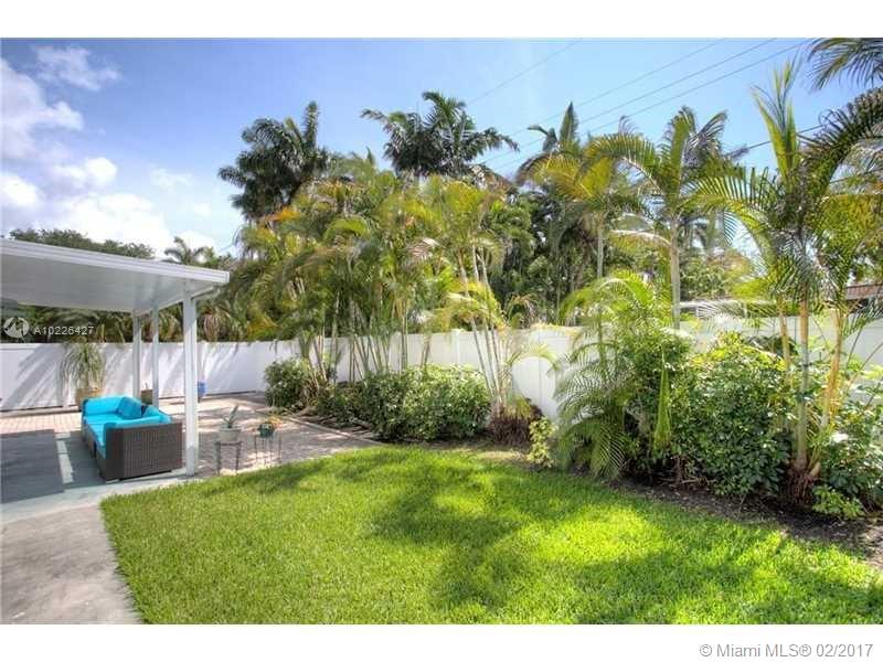 Great location E of US1. Home features Split floor plan 3 BR 3 Full BA + 1 car carport. Updated open kitchen w/granite countertops, gas stove, stainless steel appliances + Pantry. 2 of the BA are updated w/porcelain tile. New electric panel. Plantation shutters in 3 BR & Living room. Recessed lighting Beautifully restored Terrazzo floors Spacious backyard w/large covered patio, great for entertaining. Gas dryer & Water heater (2) Detached storage sheds. A/C replaced in 2012. High-end LG Washer & dryer.