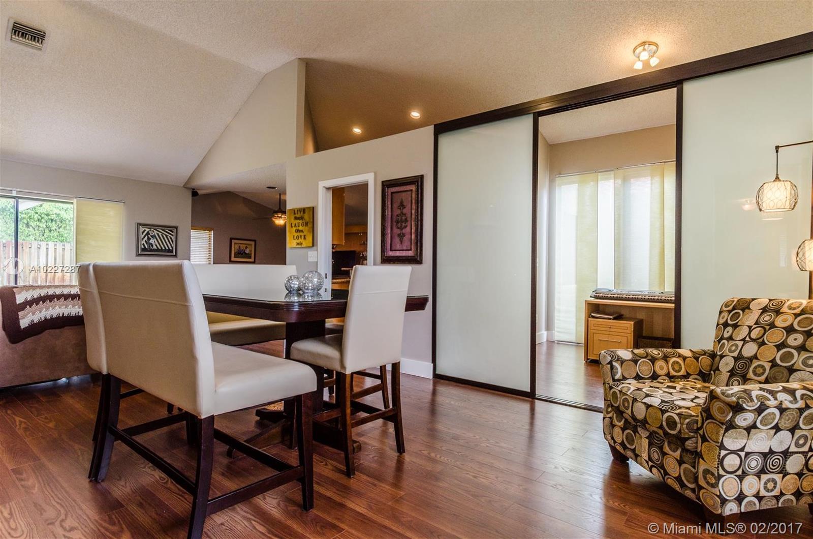 One of a Kind, completely Remodeled home in Eagle Creek. 3 bedrooms PLUS office/den. Bathrooms updated and modern. Spacious bedrooms with walk in closets and closet cabinetry all done for you. Kitchen is remodeled and great for entertaining. High ceilings throughout the house. The roof is NEW, only 5 months. 2 car Garage, Floor freshly Epoxy surfaced & Beautiful. Very big back yard with room for a pool. Landscaping is awesome. Close to all of what Pembroke Pines has to offer, including City Pines.