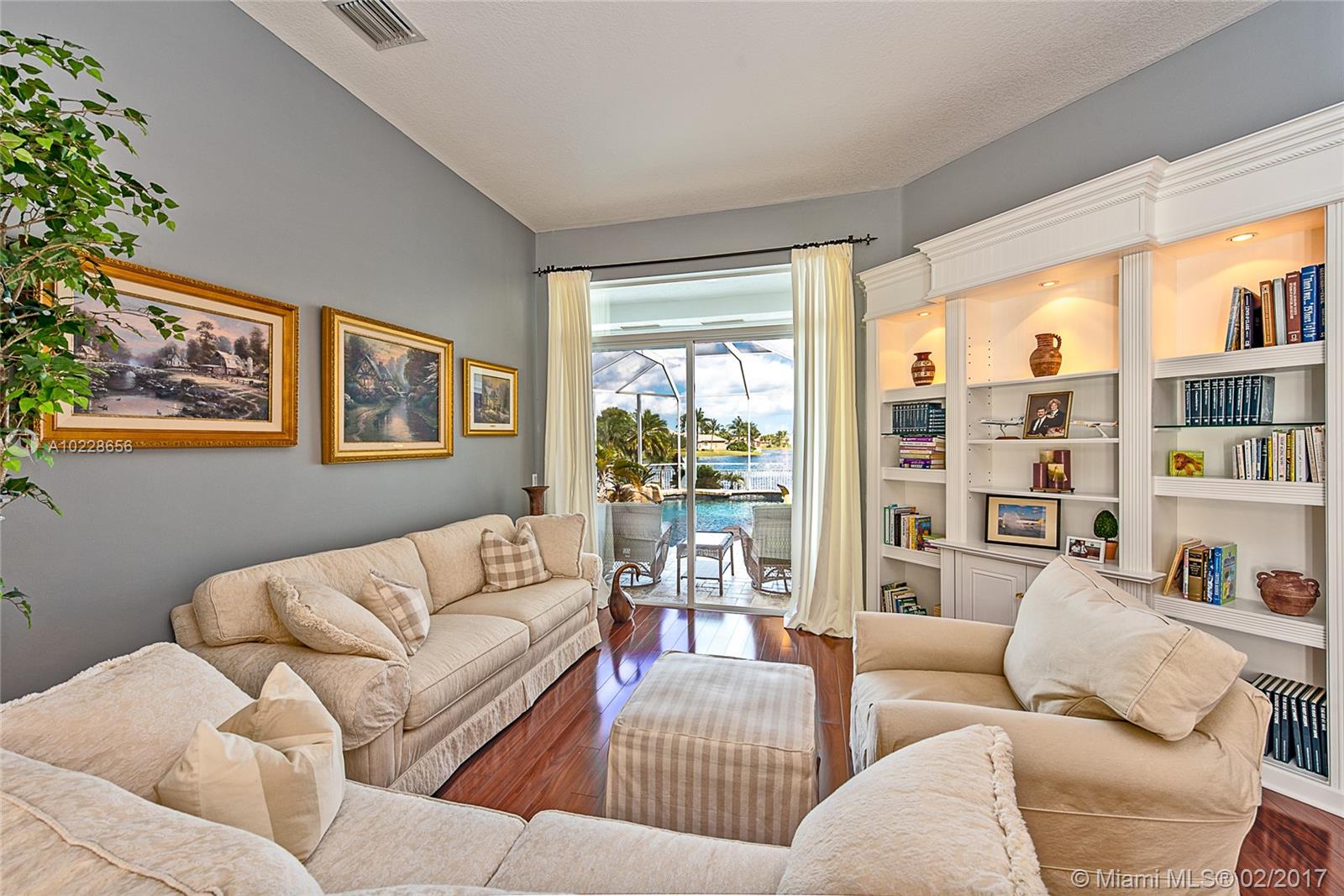 Situated in one of the best lake front lot in Stoneridge Lake Estates. This beautiful one story 4 bedrooms, 3 full-baths, 3 car garage, pool and lake home offers; a desirable triple split floor plan, neutral colors throughout, gorgeous remodeled kitchen with stainless steel appliance and quartz counter tops. Lake views from almost all the areas, screened pool area with travertine deck, fully fenced lot. hurricane shutters, Gated community. Excellent location and schools!