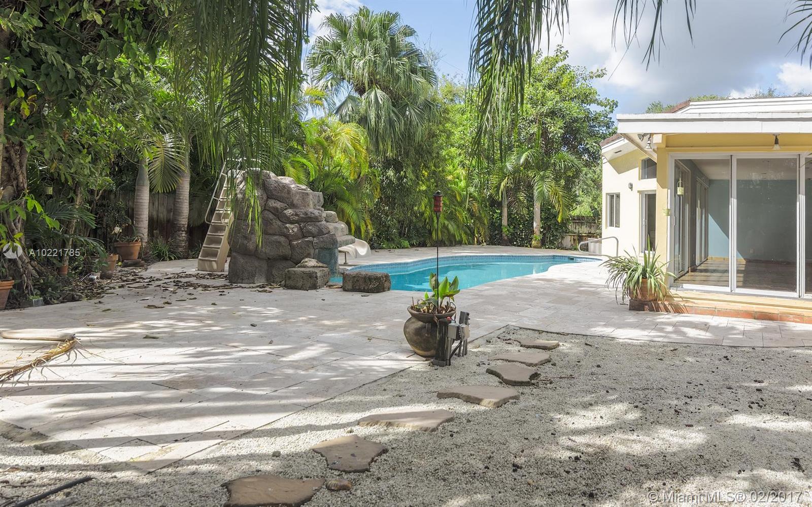 EAST OF US-1 IN MIAMI SHORES 1/2 BLOCK FROM BISCAYNE BAY. 4 BEDROOMS AND 3 FULL BATHS. LARGE MASTER SUITE WITH HUGE WALK-IN CLOSET AND SPA LIKE BATHROOM. MASTER BATH HAS STEAM SHOWER. BIG LIVING ROOM, FORMAL DINING ROOM AND FAMILY/FLORIDA ROOM THAT OVERLOOKS THE POOL AND GARDEN. IMPACT WINDOWS AND DOORS, CENTRAL A/C, WOOD AND TILE FLOORS. COVERED FRONT PORCH, FENCED YARD WITH HEATED POOL AND BIG PATIO. ATTACHED 1.5 CAR GARAGE. QUIET STREET.