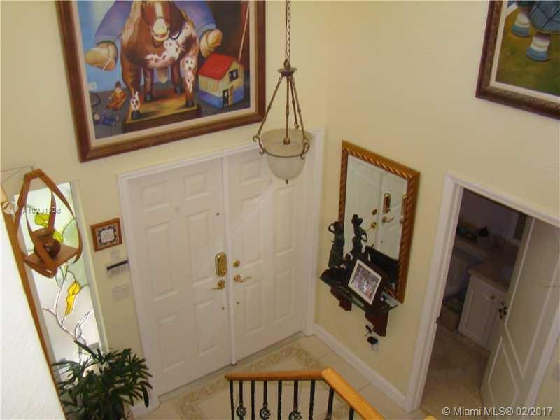 BEST GATED COMMUNITY IN WEST MIRAMAR Biggest Townhouse, 5/2.5 with 2 car garage Looks like new, Vaulted ceiling, Formal Living Room w/ Roman Columns. Formal dining, Gourmet kitchen with upgraded cabinetry, granite counters, side by side refrigerator, Stanley steel appliances, Family room, Private patio. Tile first floor, Laminated wood new on 2nd floor and rooms. Elegant master room with roman tub. Knockdown ceiling and walls One car garage is convert in bedroom with professional A/C BIG great back yard
