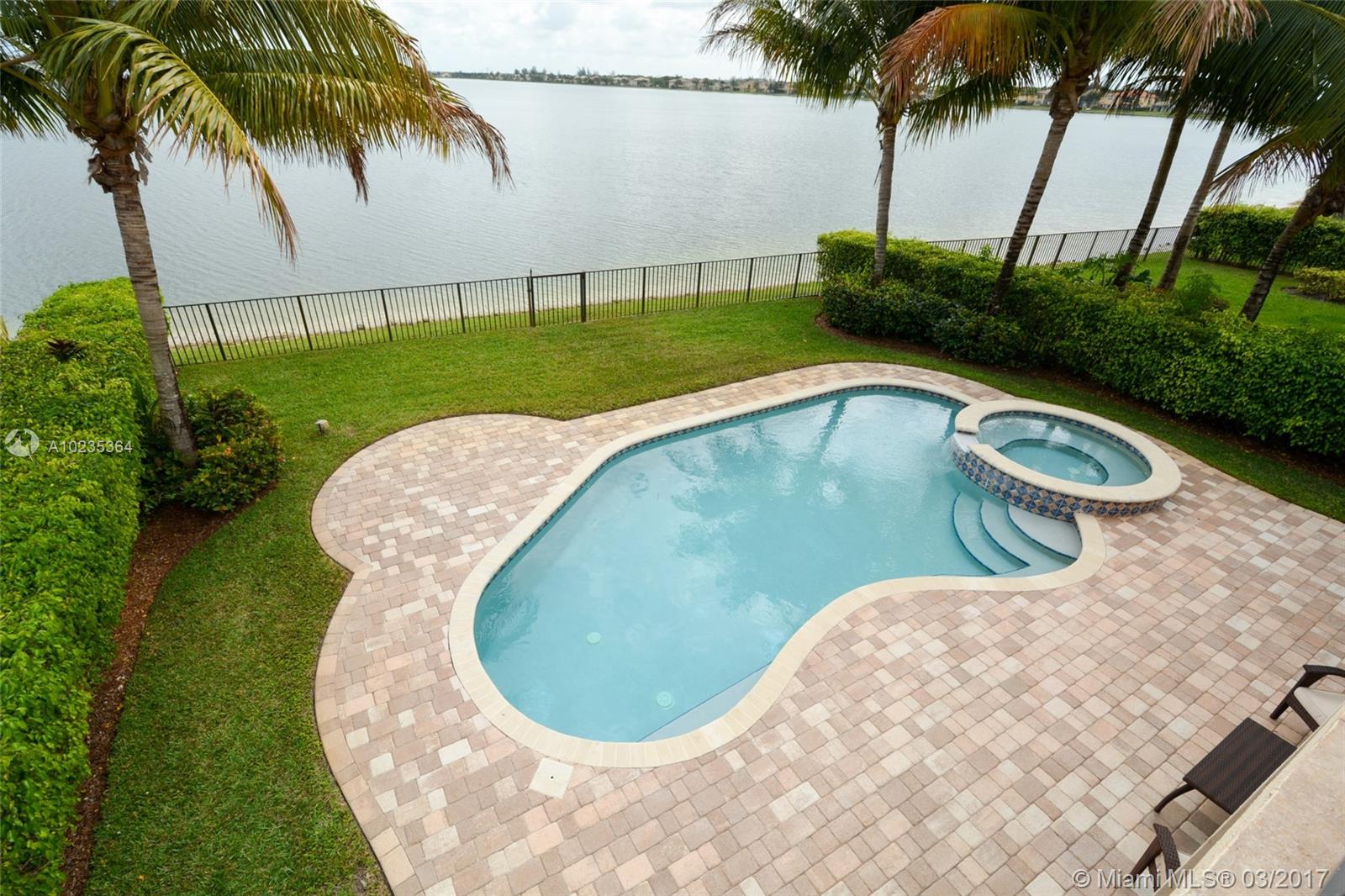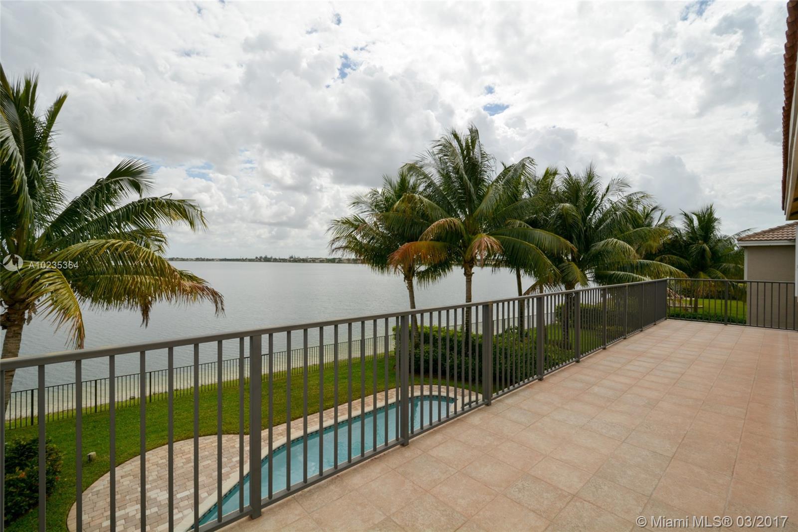 Beautiful 5 bedroom 4 bath with incredible mile 1/2 panoramic views of the lake. Completely upgraded throughout w/ gourmet kitchen, s.s. appliances & granite. Large master bedroom with sitting area, his/her master baths w/walk thru shower. Large his/her walk in closets, master leads out to large balcony w/breathtaking views of the lake. Salt water pool with jacuzzi, large patio and backyard for entertaining. One bedroom downstairs w/full bath, laundry room upstairs, pristine property. Guard gated.