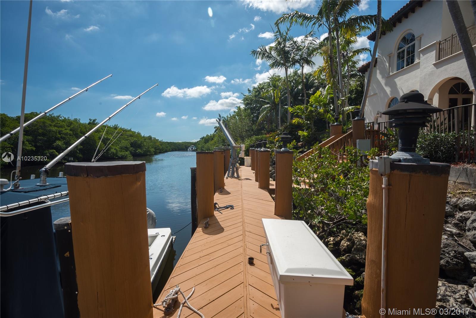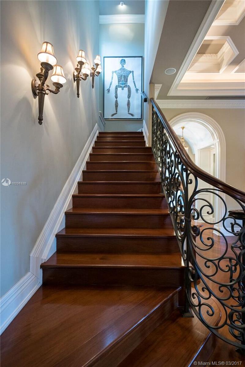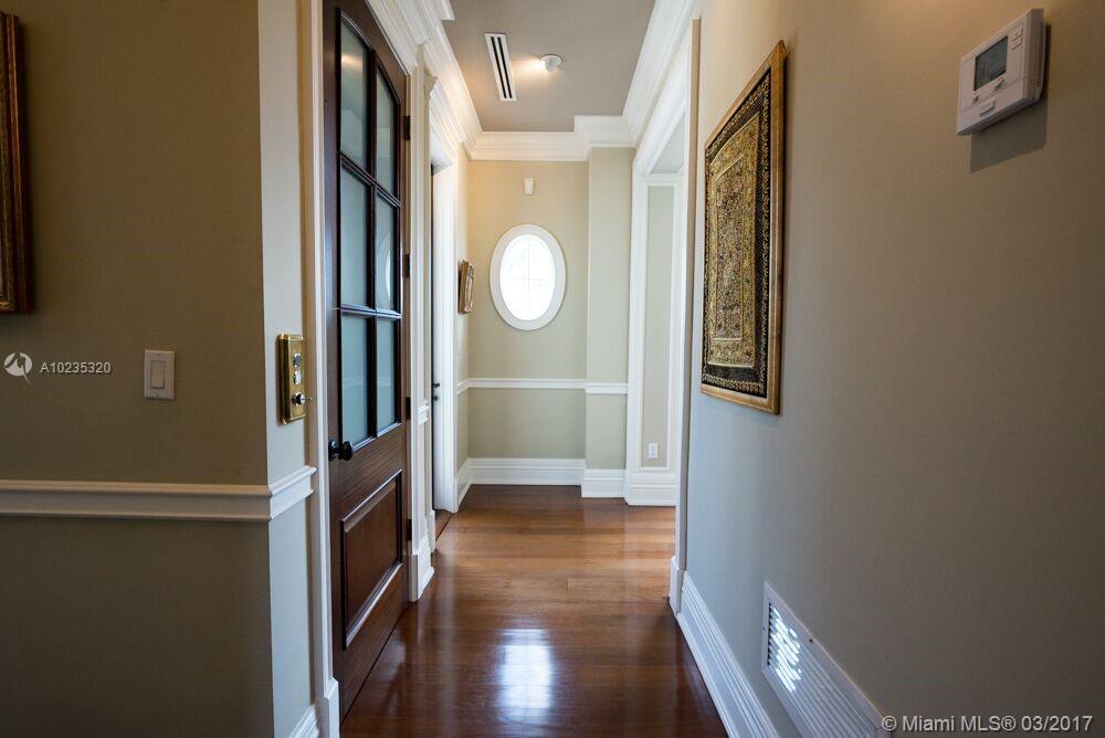 Exquisite Private Waterfront Residence, Enclosed Breezeway Entry, High Coffered ceilings, gorgeous Millwork, Summer kitchen,wine storage for 750 bottles, Gym, Gourmet Kitchen, Pantry, 5 bedrooms, 4 Baths on 2nd Floor, balconies, Elevator. 6th Bedroom Suite on first floor, now used as Office. Expansive Private Master with Sitting Area, luxurious bath, extra large closets. Terraces overlooking Pool and water views. A truly beautiful home. 2005 Winner, Best Custom Home Platinum Award. 15,428 Ft Lot.